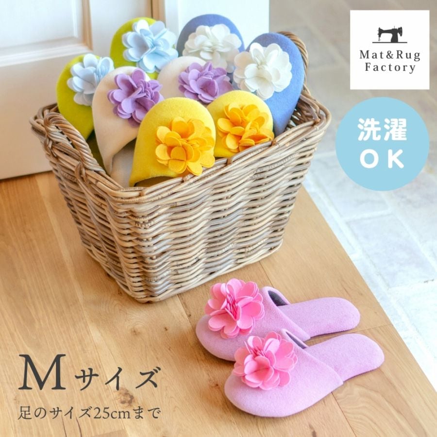 Nジュエルフラワー スリッパ ( ルームシューズ コサージュ 足のサイズ約25cmまで対応 洗える )