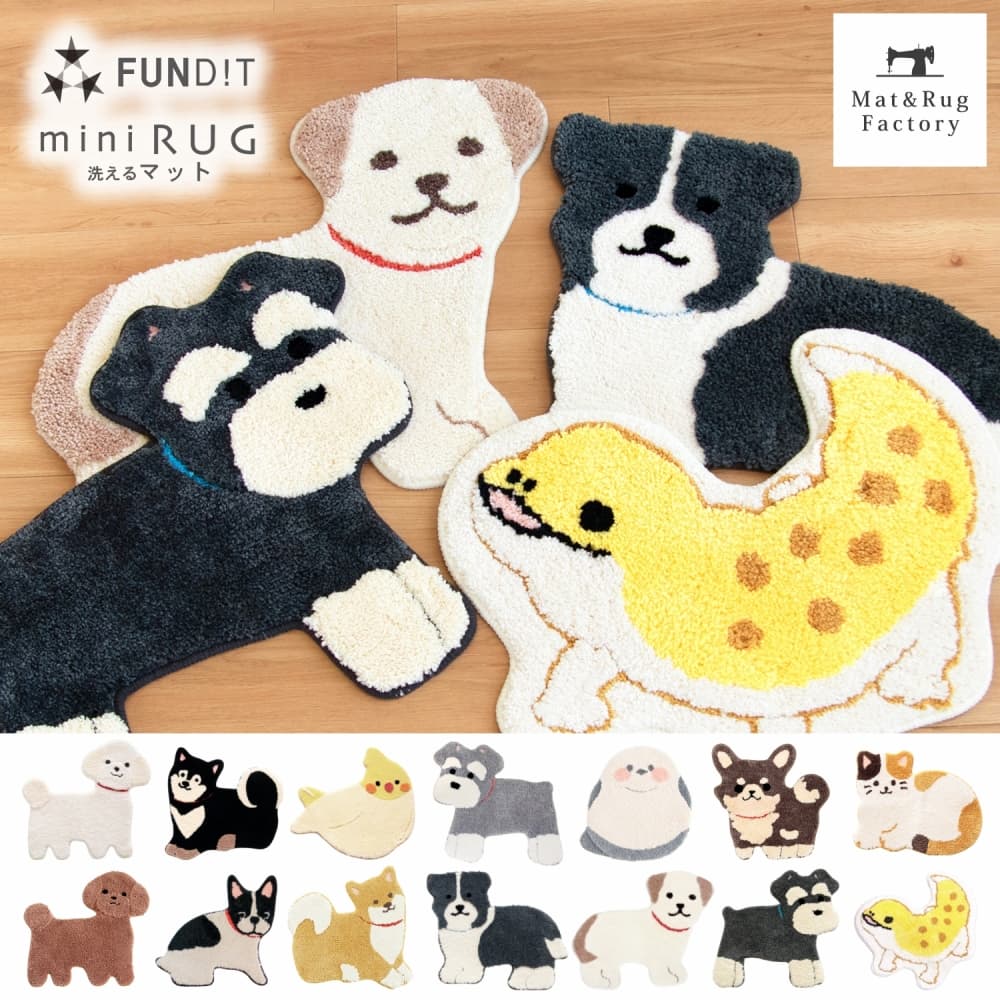 ファンディットアニマル アクセントマット ( 洗える ミニラグ 犬 ネコ インコ シュナウザー シュナマット シマエナガ ダイカット ペット 豆柴 プードル レオパ )