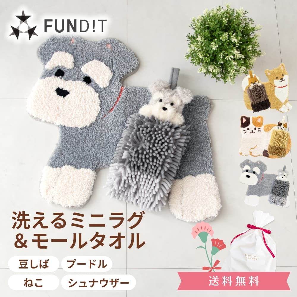 ファンディットアニマル ミニラグ+モールタオル セット ( 洗える アクセントマット タオル 犬 猫 プードル 豆しば 三毛猫 シュナウザー ギフト プレゼント )