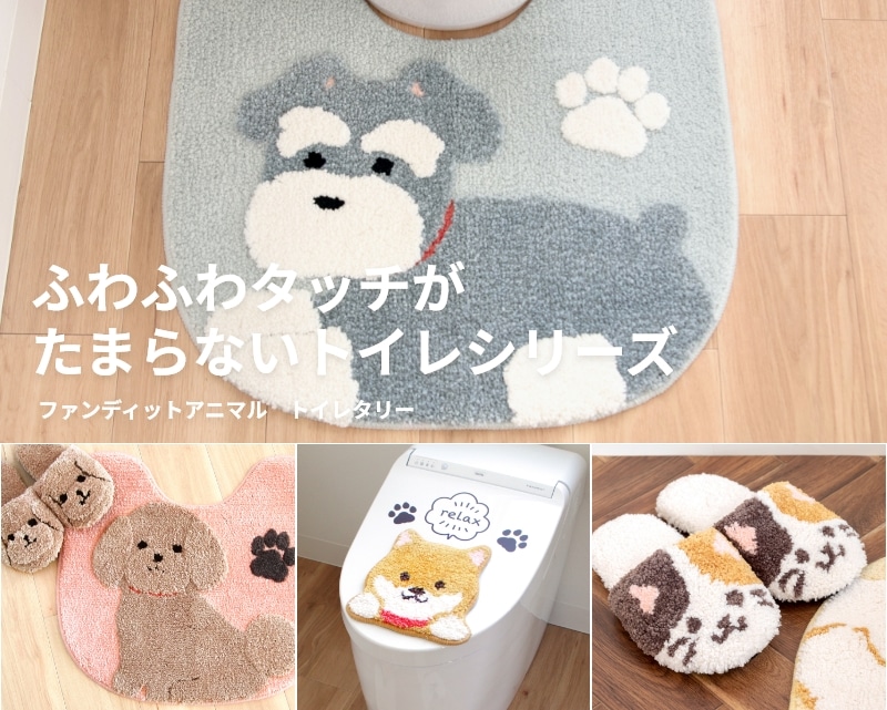 可愛い動物と暮らす癒やしのトイレ空間を演出。トイレを可愛いアニマルたちでいっぱいの癒やし空間に変身させませんか?人気のファンディット アニマルシリーズのトイレタリーが勢ぞろい!豆しば、ねこ、トイプードル、さらに大人気のシュナウザーも登場!キュートなキャラクターモチーフで、トイレに入るたびにほっこり。トイレマットやスリッパ、ペーパーホルダーカバーをセットで揃えれば、統一感のあるおしゃれなアニマルトイレが完成します。さらに、すべて洗える仕様なので、お手入れも簡単で清潔に保てます!新生活や動物好きな方へのギフトにもぴったり。毎日の生活に可愛い笑顔をプラスしませんか? ソース