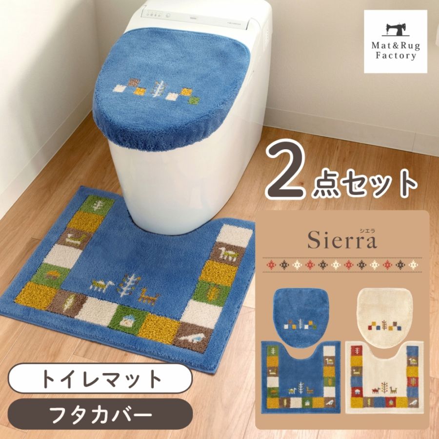 シエラ トイレ2点セット ( トイレマット+トイレフタカバー)(洗える 裏面すべり止め加工 ギャベ ナチュラル 北欧 風水 )