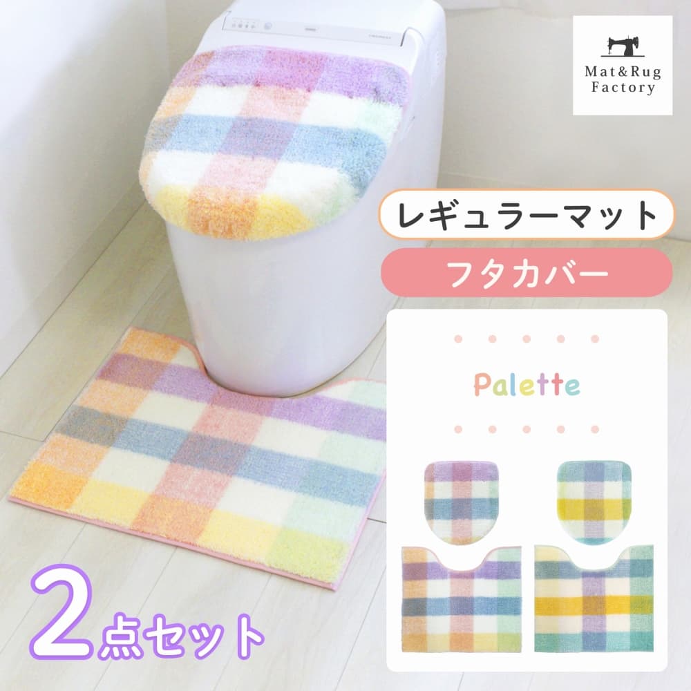パレット トイレ2点セット ( ミドルトイレマット+トイレフタカバー)(洗える 裏面すべり止め加工 チェック パステル ナチュラル 北欧 風水 )
