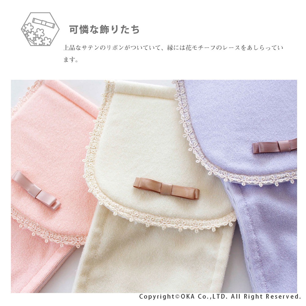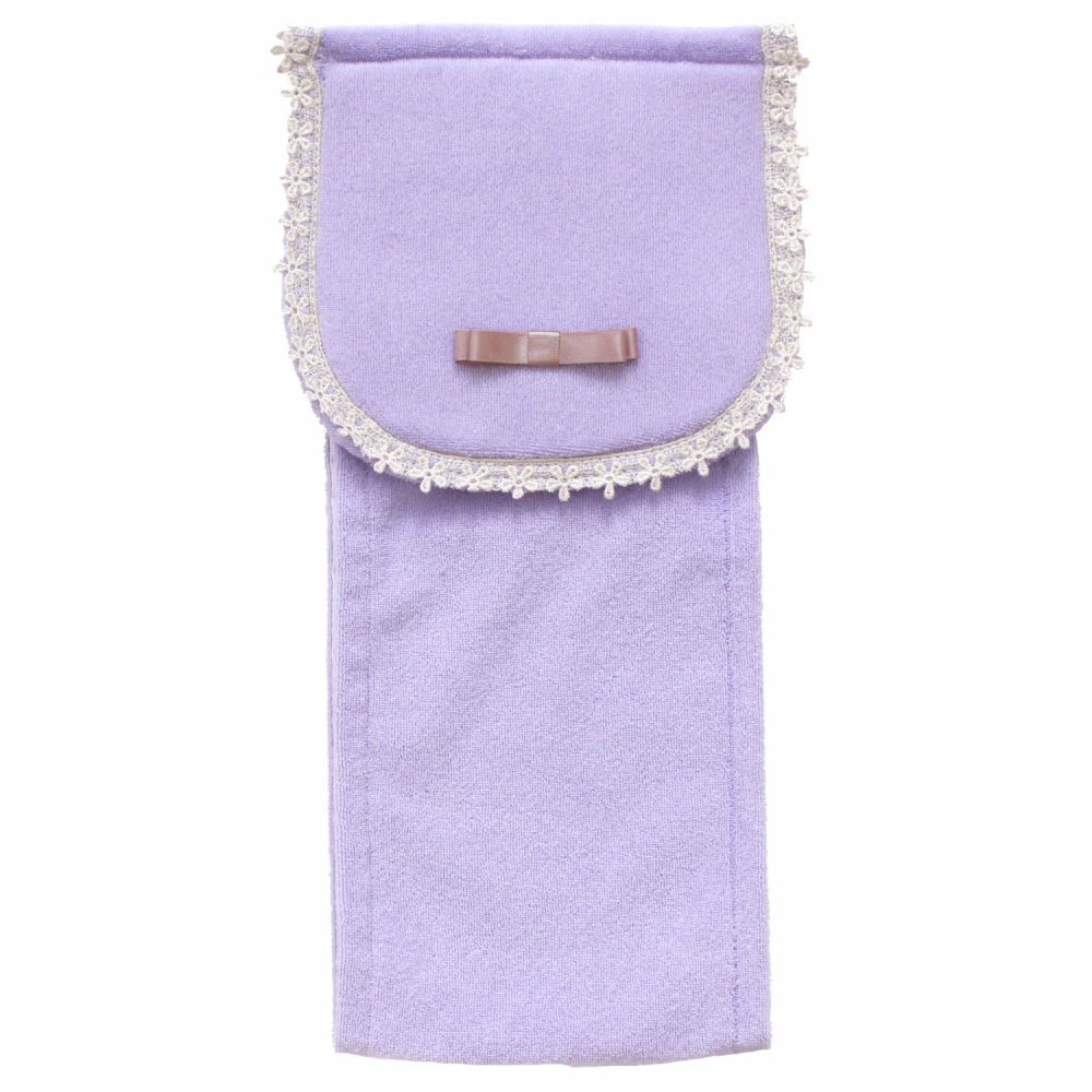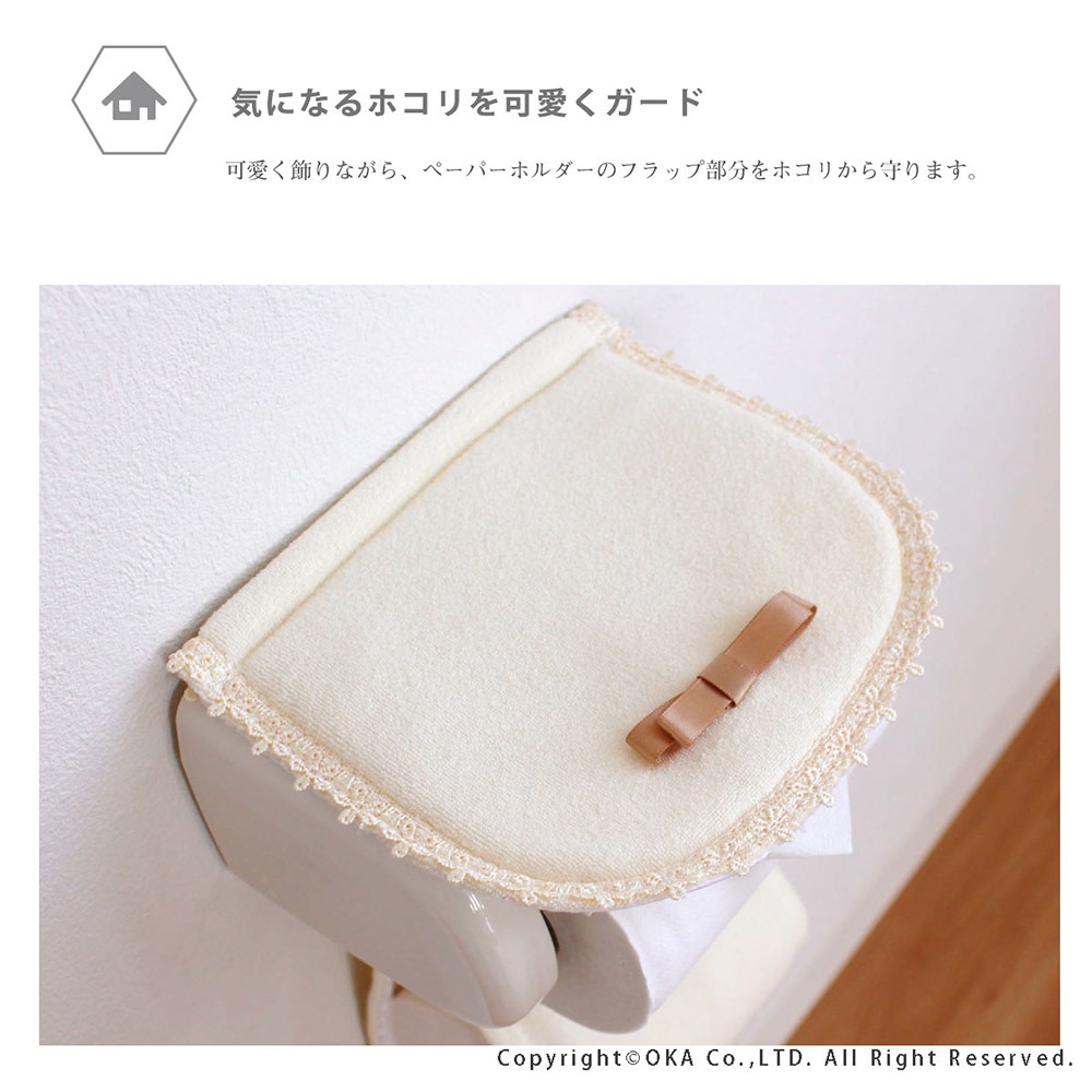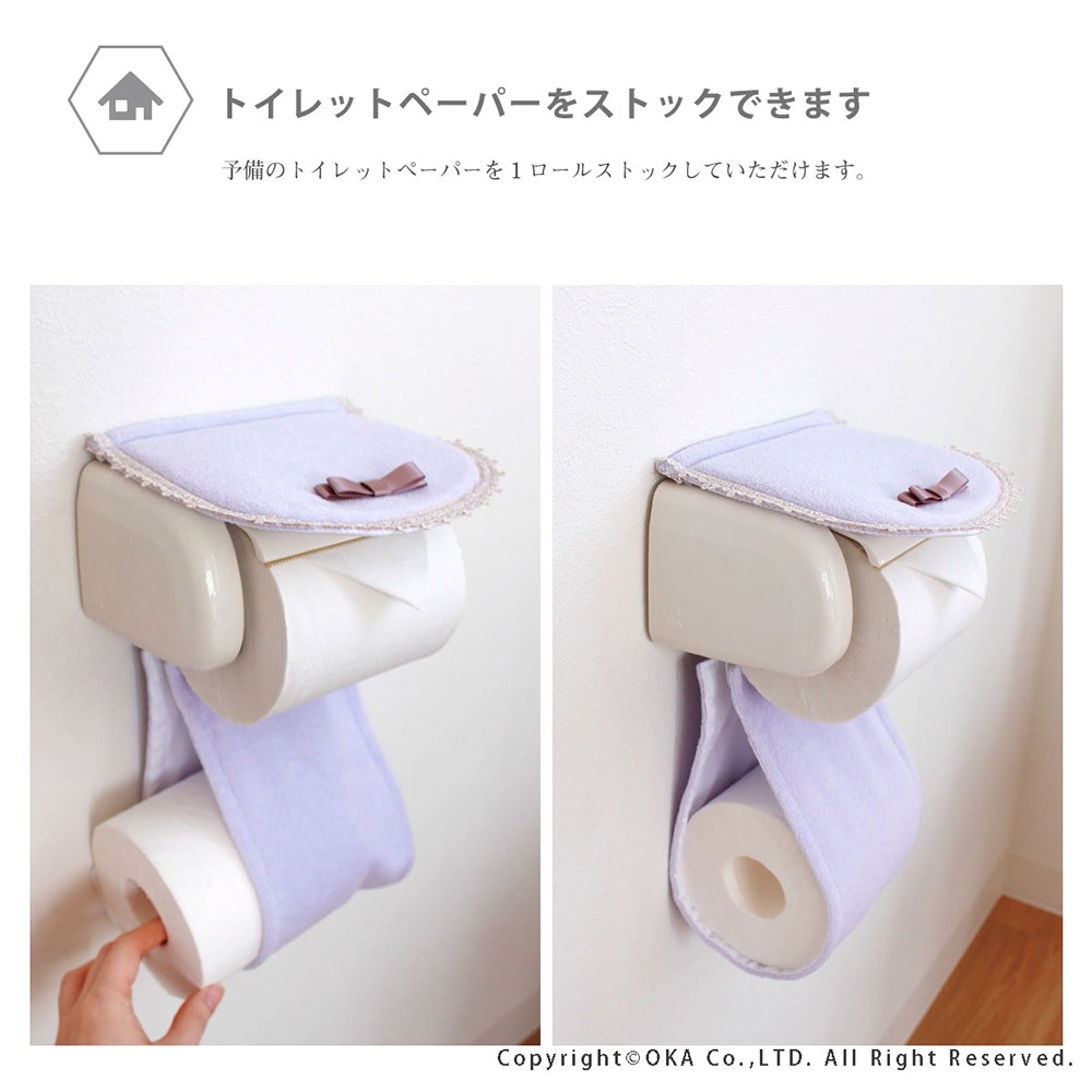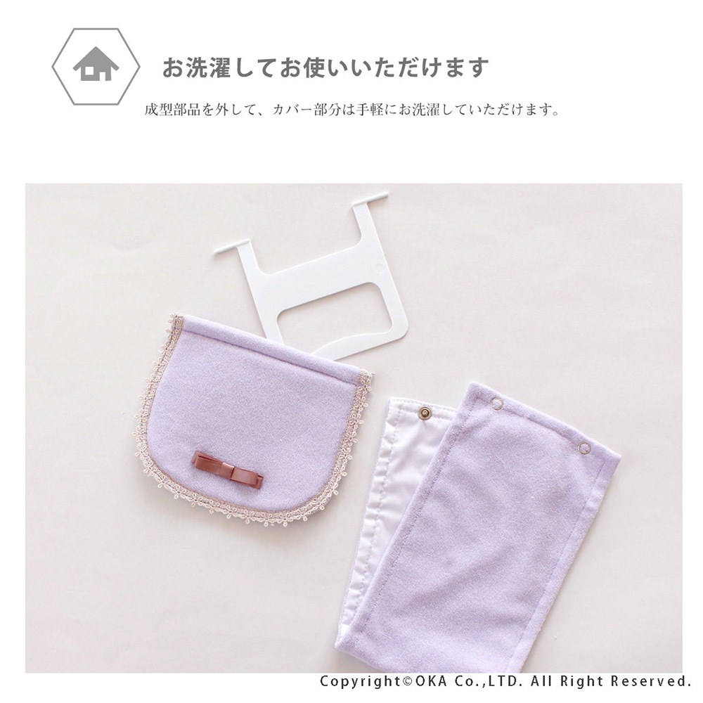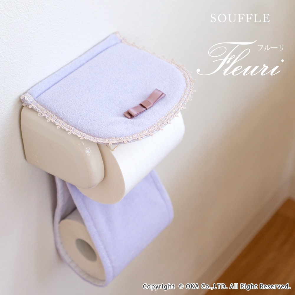上品で可憐な「フルーリスフレ」シリーズ。カバー上部にちょこんとリボンが付けられた女子が思うかわいいを詰め込んだカバーになりました。カバーには、それぞれのカラーに合わせた、上品なサテンのリボンと、縁には花のモチーフのレースをあしらっています。可愛く飾りながら、ペーパーホルダーのフラップ部分をホコリから守ります。落ち着いたスモーキーパステルカラーを基調とし、ふんわり優しいピンクと、上品で綺麗なパープル、きれいめカジュアルなベージュの3色展開です。成形部品を外して、カバー部分は手軽にお洗濯していただけます。