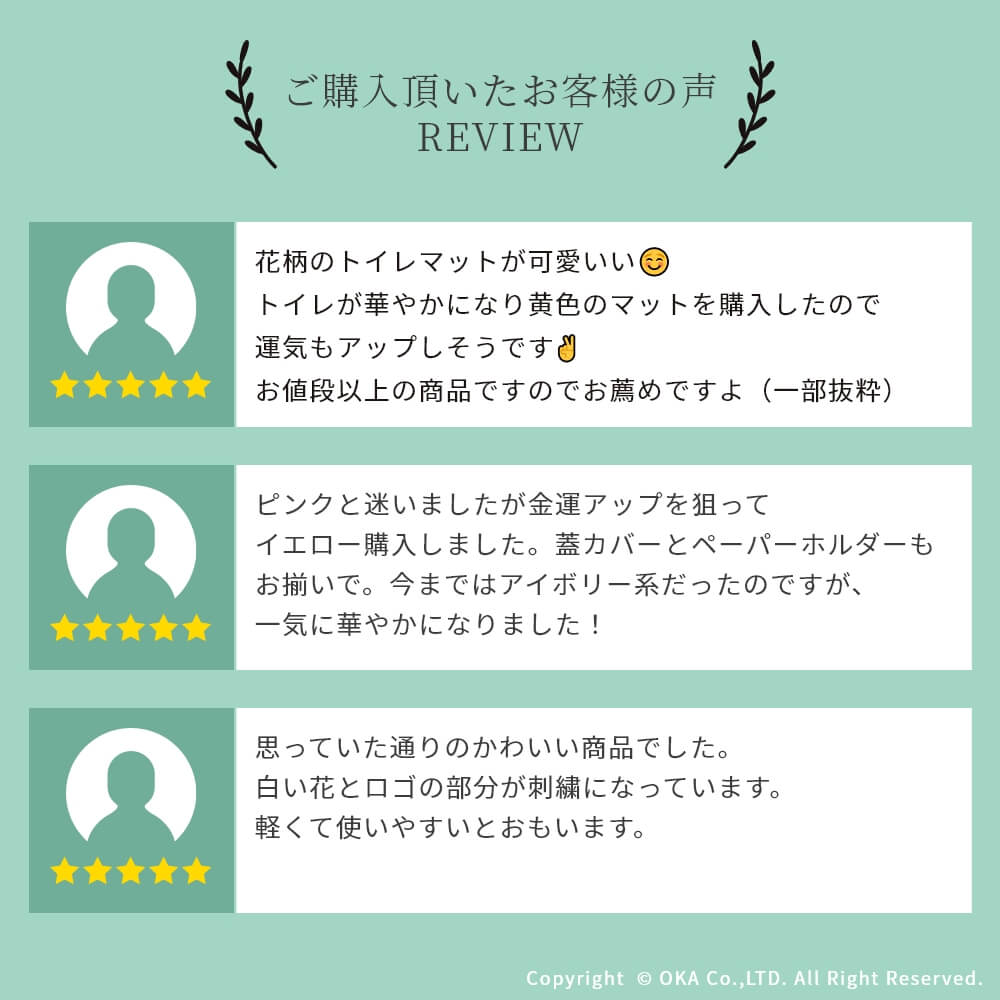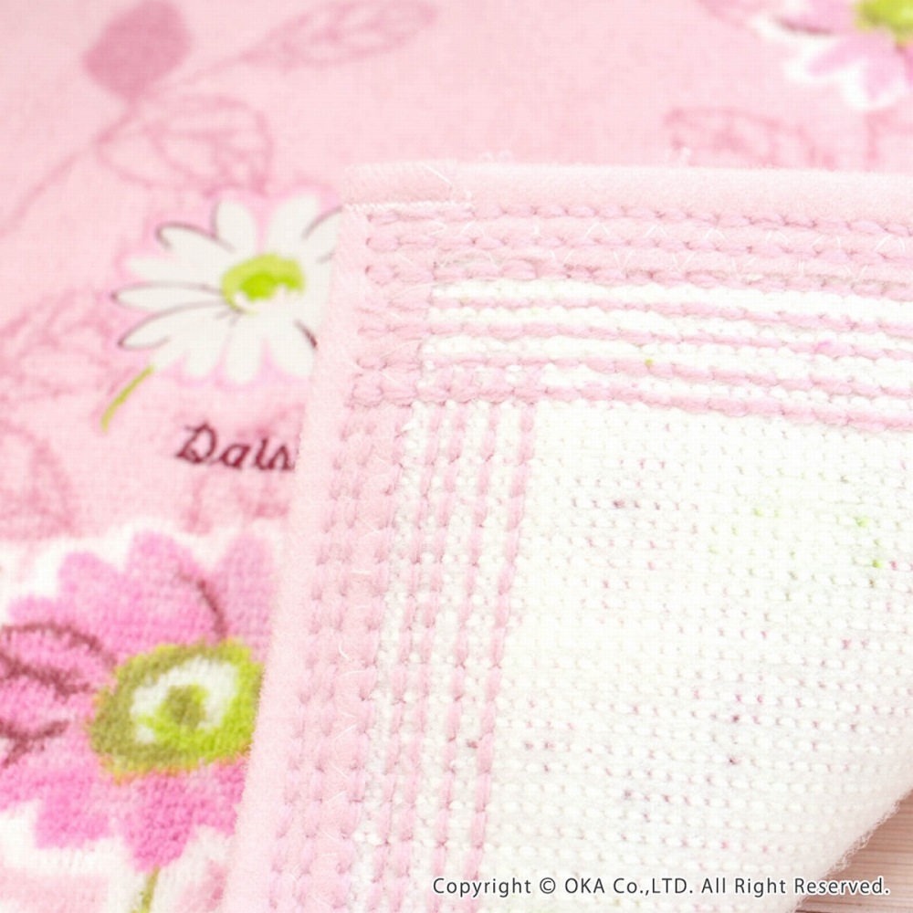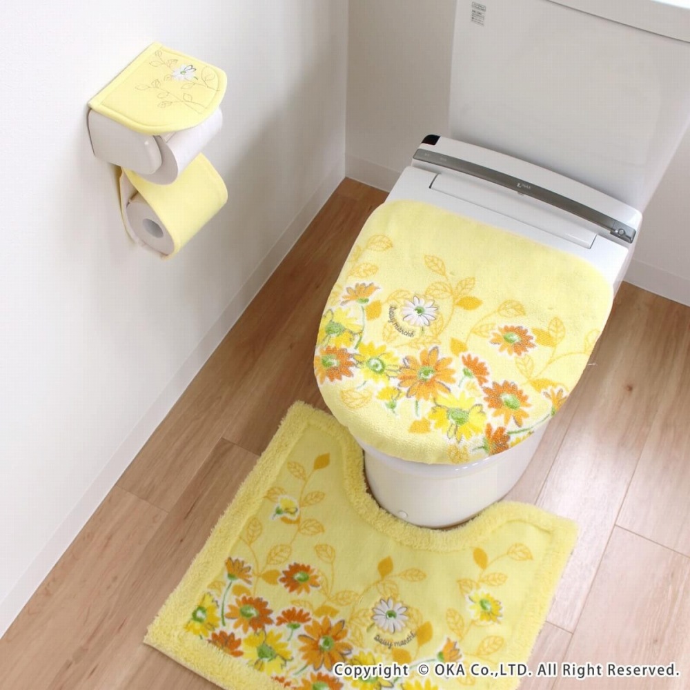 幅広い世代から愛されるデイジーの花をモチーフにしたトイレシリーズ「デイジーマルシェ」のトイレマットです。デイジーの花言葉は「あなたと同じ気持です」「無邪気」「希望」。 細長い花びらを整列させて咲く姿は元気で明るい印象で、清潔感もありトイレ空間にぴったりのモチーフです。手軽でカジュアル、親しみやすい花柄ベーシックをイメージし、淡い色を軽く載せた水彩画スケッチ風で表現しました。カラーは淡く優しいイメージのピンクとお部屋を明るくするイエローの2色展開です。マット裏面にすべり止め加工を施しています。お洗濯が可能ですので、汚れてしまってもすぐにお洗濯頂けます。ドラム式洗濯機の場合、ご使用の取扱説明書をご確認いただき、お洗濯してください。