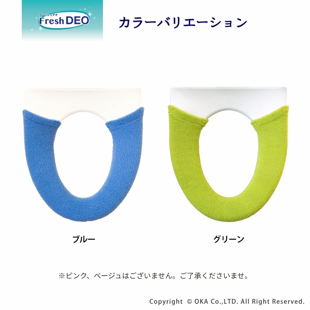 「フレッシュデオ」トイレタリーとお揃いカラーの洗浄・暖房型専用の便座カバー。やわらかな肌ざわりで伸びが良い便座カバーです。丸洗い可能なのでご自宅の洗濯機でお手入れができます。便座カバー繊維そのものに消臭効果があり、洗濯しても効果は持続します。トイレの中で気になるアンモニア臭にも効果があります。日光に当てたり、洗濯し乾燥させることによって消臭機能は回復します。