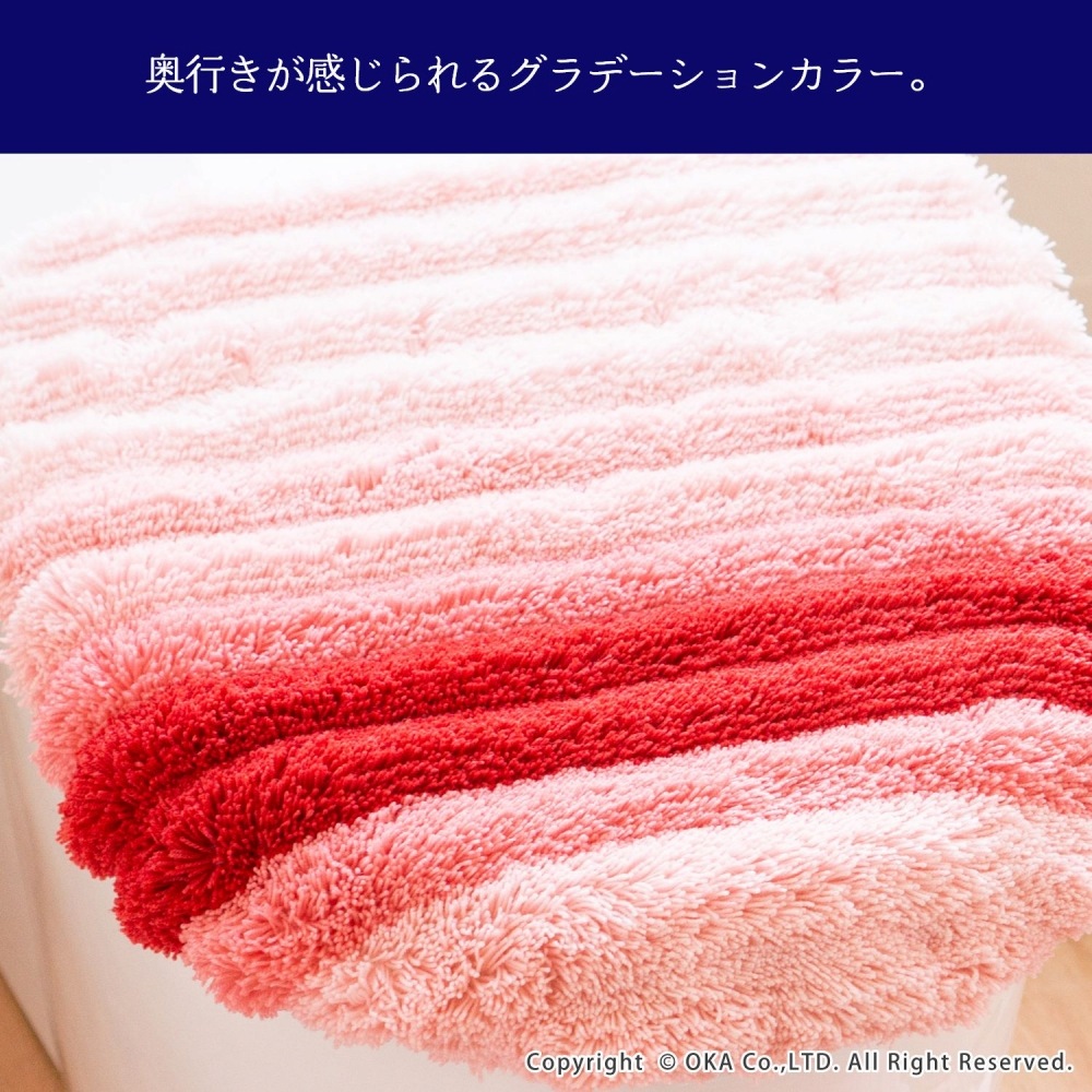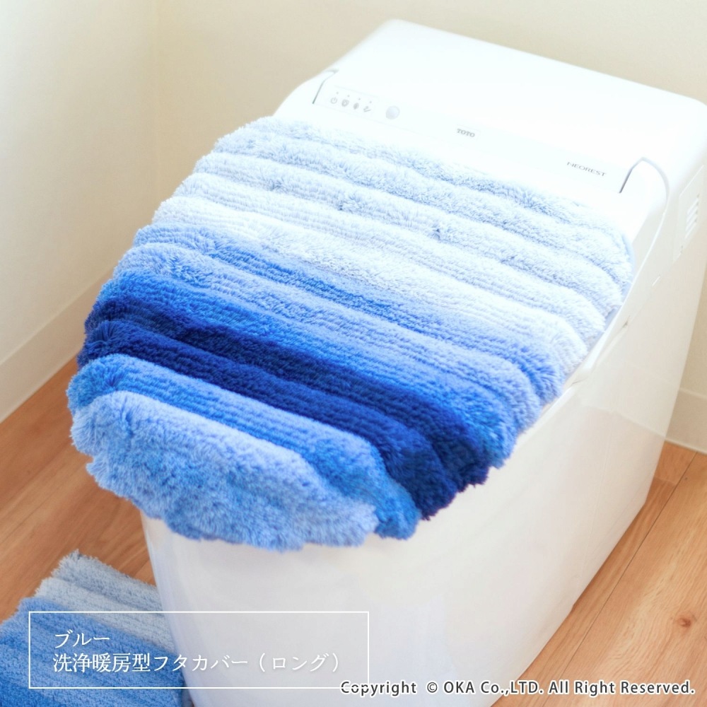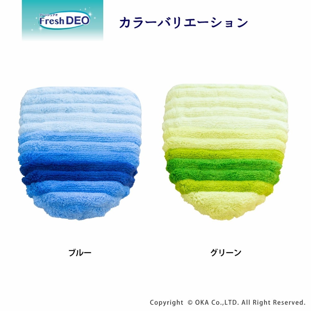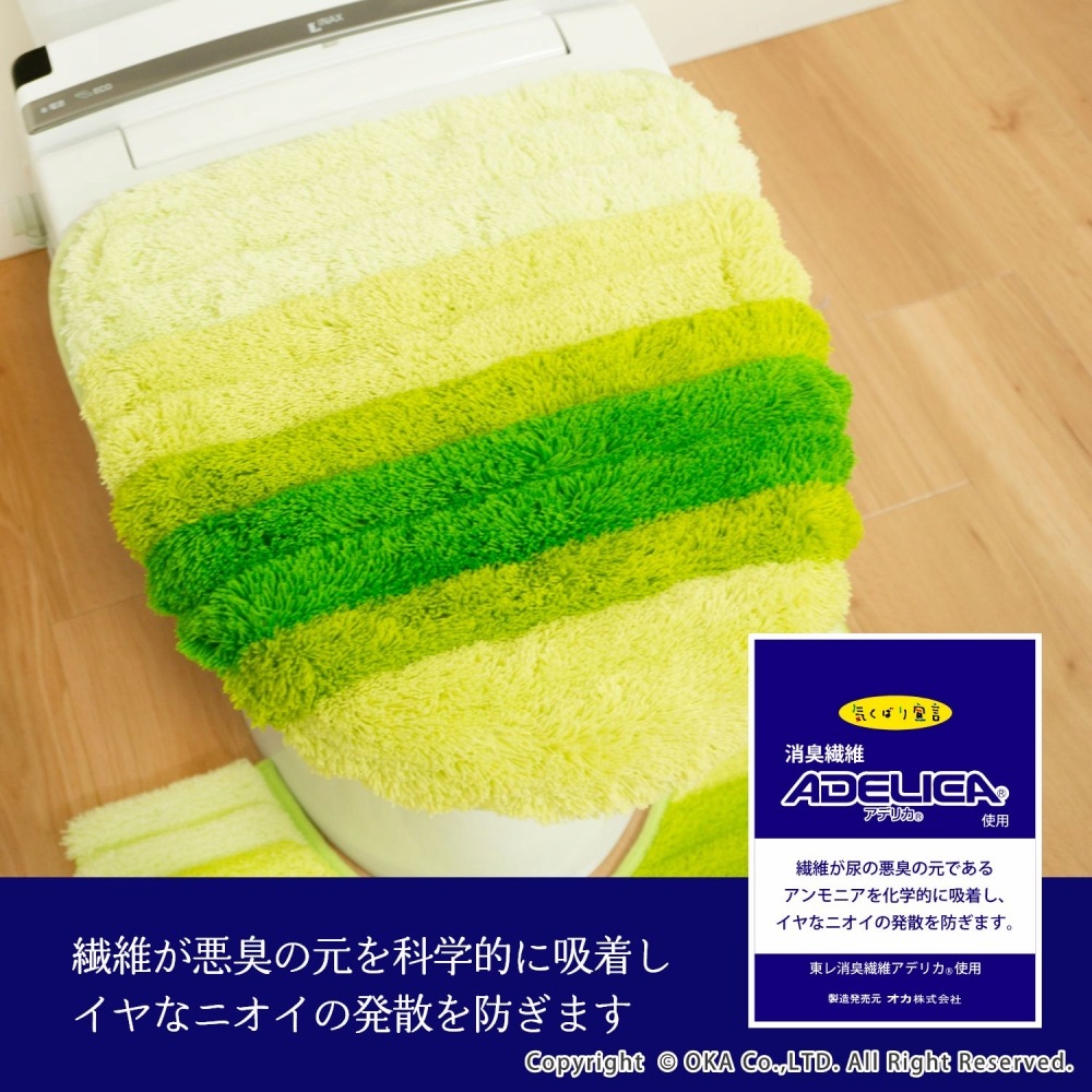 消臭機能がついたトイレタリー「フレッシュデオ」シリーズのトイレフタカバー。香りでニオイをカバーするのでなく、繊維が悪臭の元を化学的に吸着しイヤなニオイの発散を防いでくれます。繊維そのものに消臭効果があり、洗濯しても効果は持続します。トイレの中で気になるアンモニア臭にも効果があります。日光に当てたり、洗濯し乾燥させることによって消臭機能は回復します。奥行きが出るグラデーションカラーが美しく広く感じられます。もこもことした楽しい見た目、ふかふかとしたやわらかなタッチのカバーになりました。
