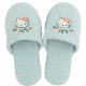 「ハローキティ グレース」シリーズの洗えるスリッパです。キティちゃんの顔が刺繍されたシンプルなデザイン。キティちゃんのまわりに散りばめられたバラが上品な雰囲気。キティちゃんの輪郭の強弱やリボンの水彩タッチも刺繍で丁寧に表現し、細かな部分も繊細に描いています。洗濯機で丸洗いOK(※洗濯ネットをご使用ください)