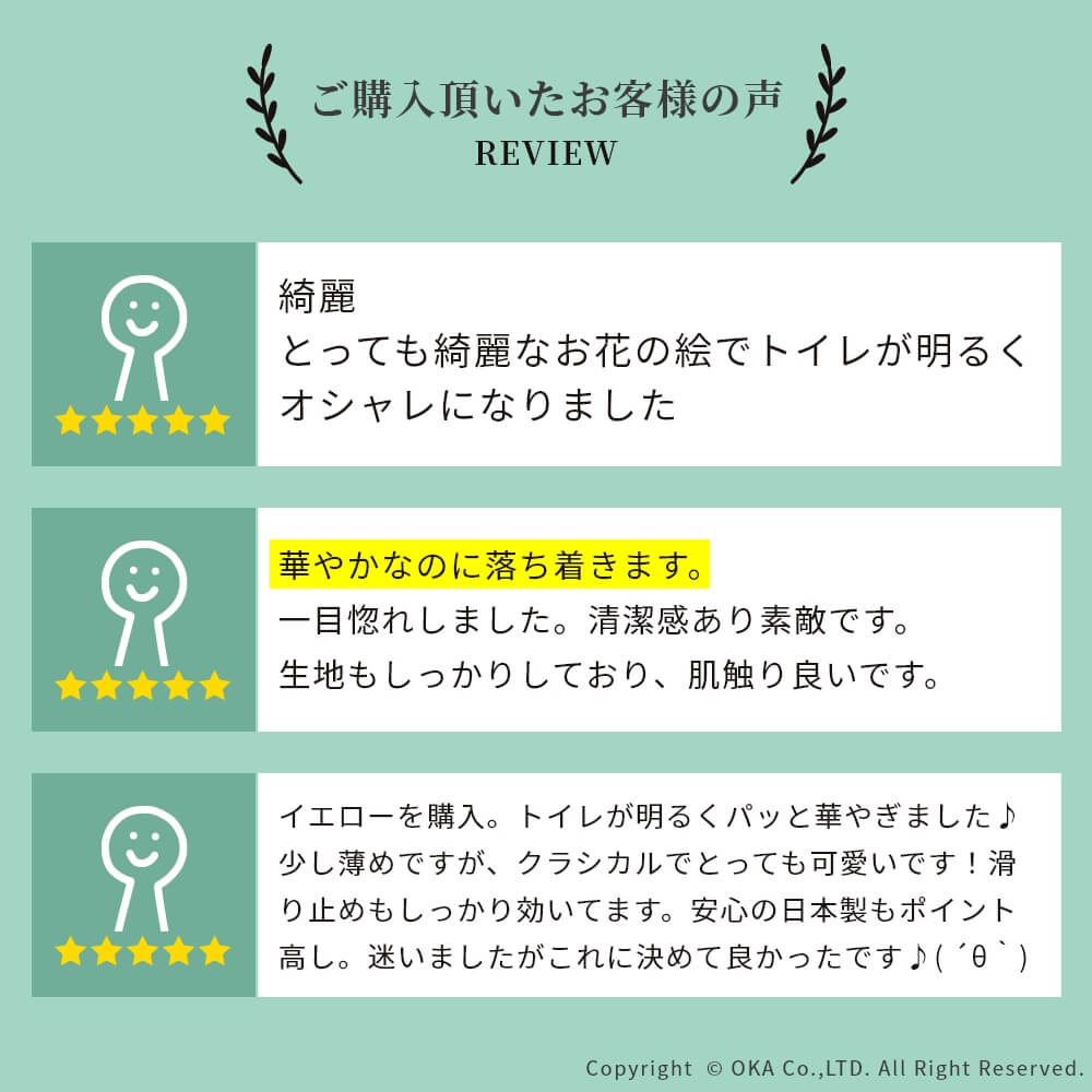 - アクリル100%(吸水加工・抗菌防臭加工)、裏面滑り止め加工