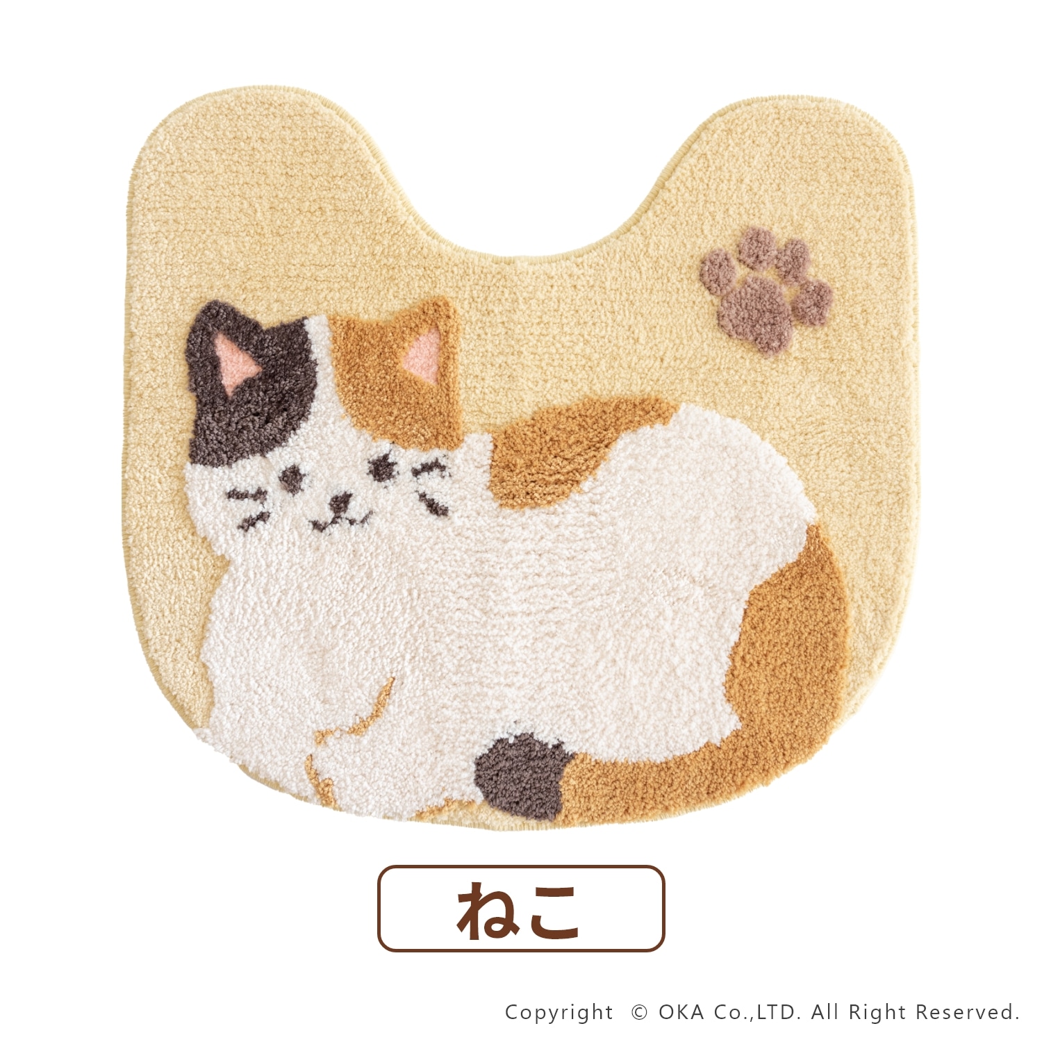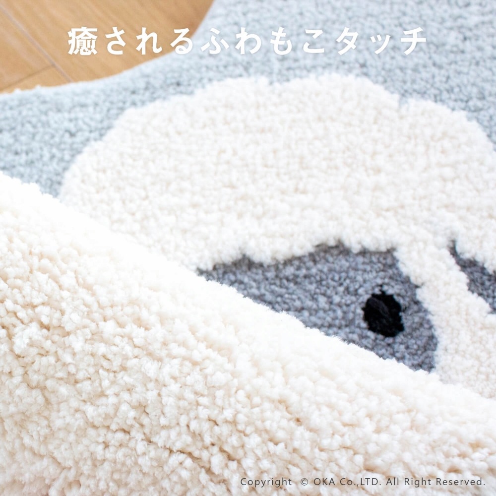 もこもこ可愛い「ファンディット アニマル トイレタリー」シリーズのお揃いのトイレマット。トイレのドアを開けるたびに可愛い動物がお迎え!つい笑顔になってしまうアイテムです。癒やされるふわもこタッチがたまらないトイレマットになりました。裏面にはすべり止め加工が施されすべりにくくなっています。丸洗いもOKなので汚れてしまいやすいトイレ空間でも清潔に保つことができます。