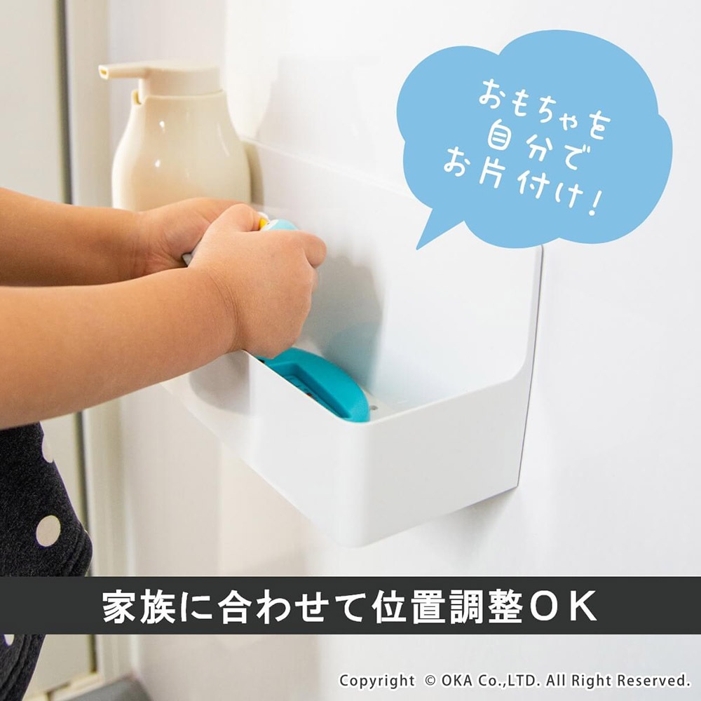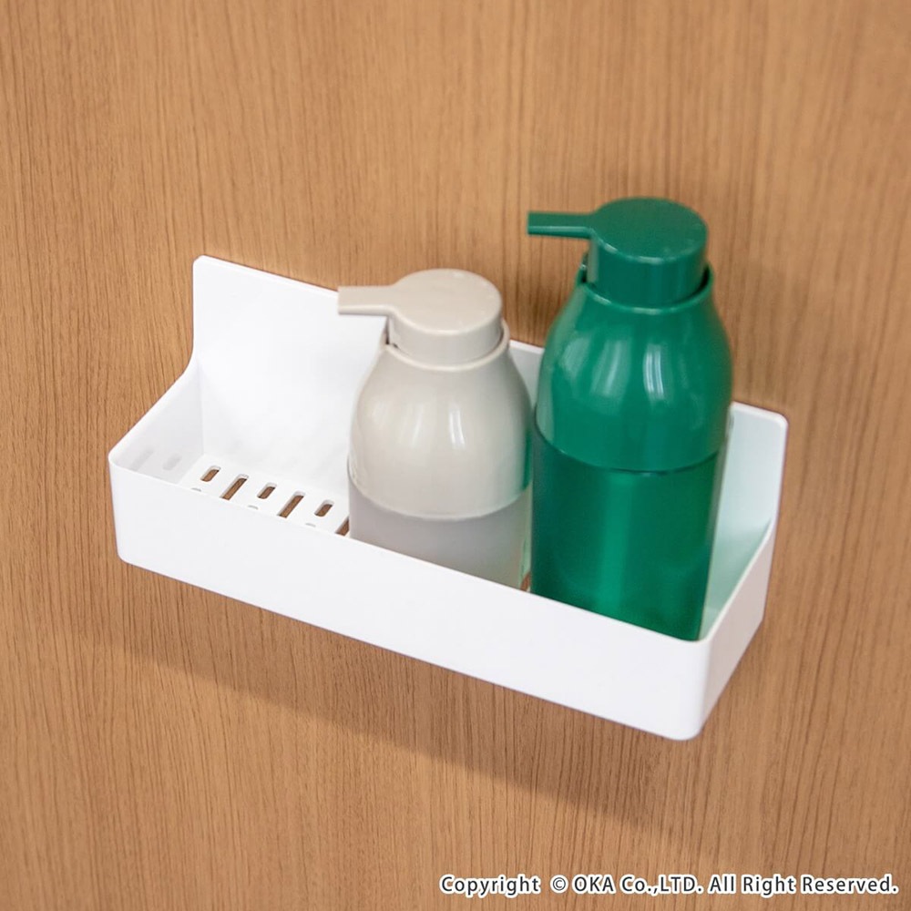 磁石で浴室の壁にくっつけて使用できる収納ポケット「磁着 SQ マグネットバスポケット」。浴室の壁をキズ付けにくく、サビにくいラバータイプマグネットを使用ています。吸盤では使えなかった、ザラザラ面(シボ面)にもご利用頂けます。着脱が何度でもでき、位置調整が簡単。PLYS ソープディスペンサーが3本置けるスッキリサイズ。お子様のかさばるおもちゃ置きにも水が溜まりにくく便利です。 ※使用する浴室の壁面に、磁石がつくことを必ず確認してください。開封した商品の交換や返品は一切出来ません。 【使えない浴室の壁】 タイル / 木 / 大きな凹凸のある壁 / ガラス / 鋼板を利用していない浴室壁面