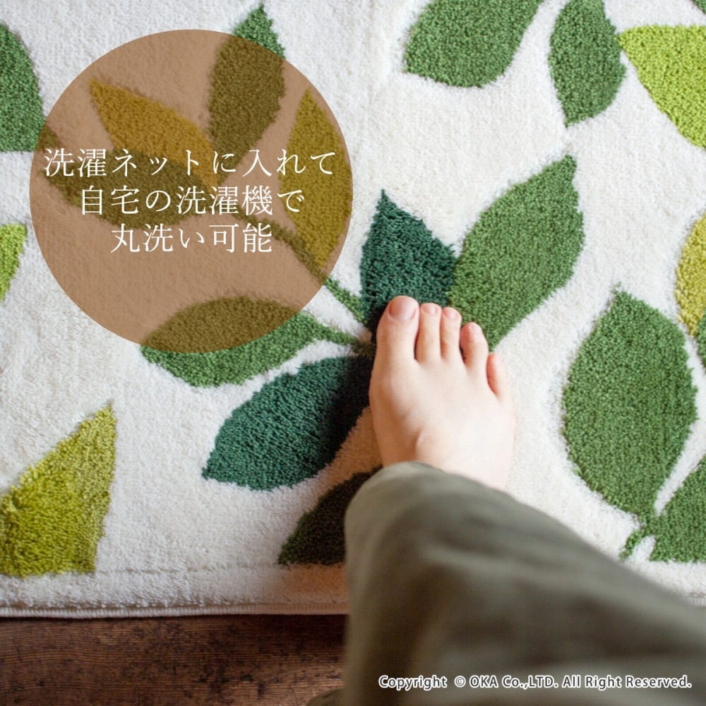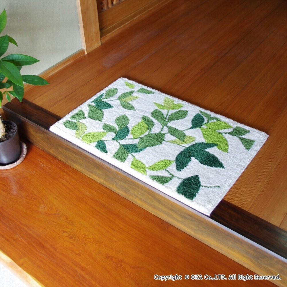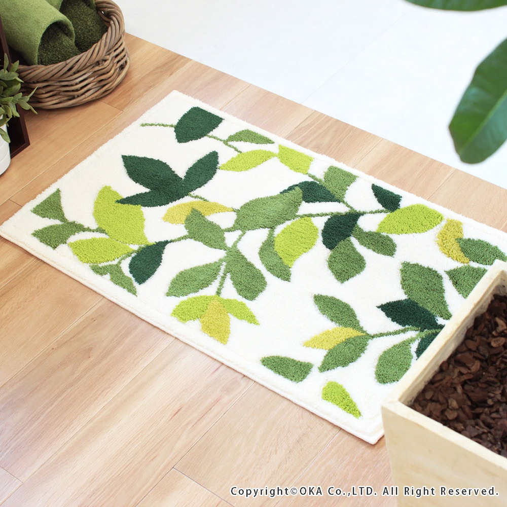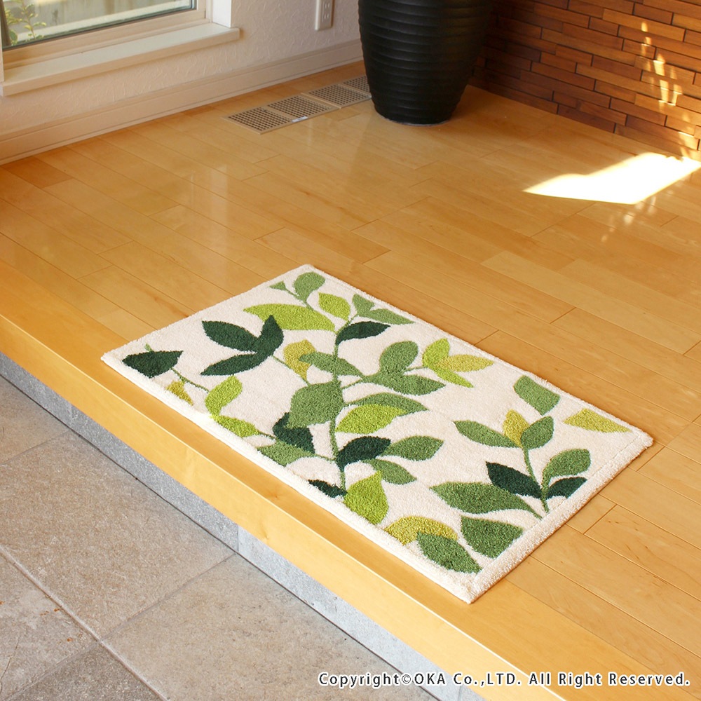 洗えるコーナー吸着玄関マット リーフグリーン2 約45cm×75cm ( 日本製 洗える おしゃれ アイボリー グリーン )