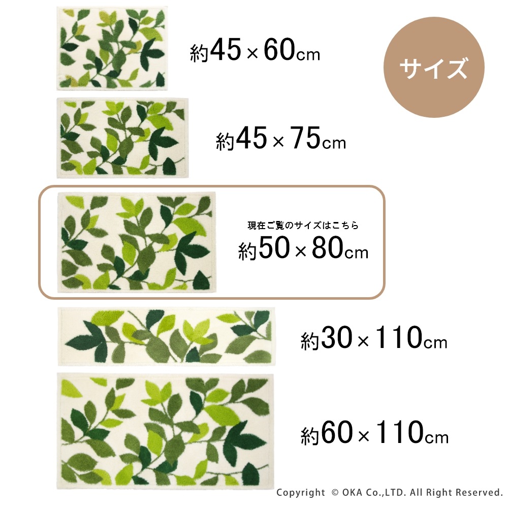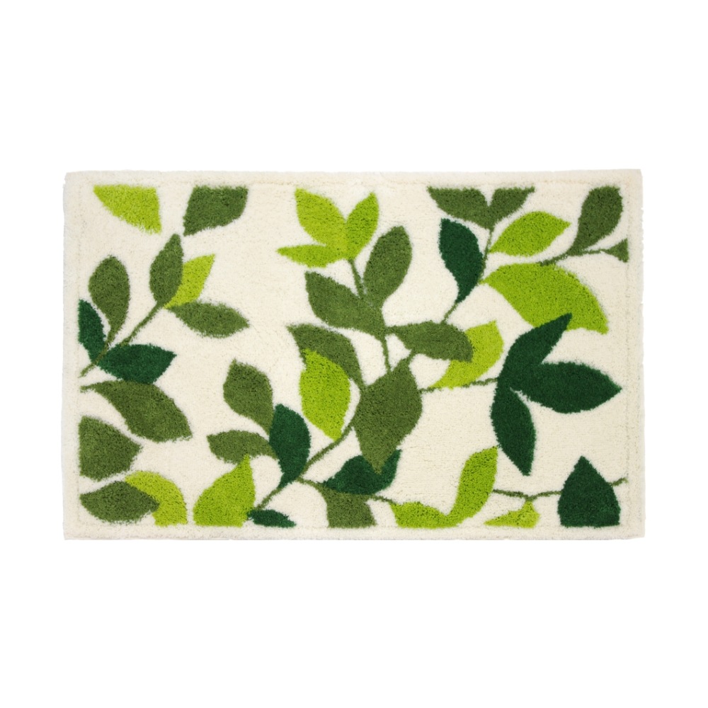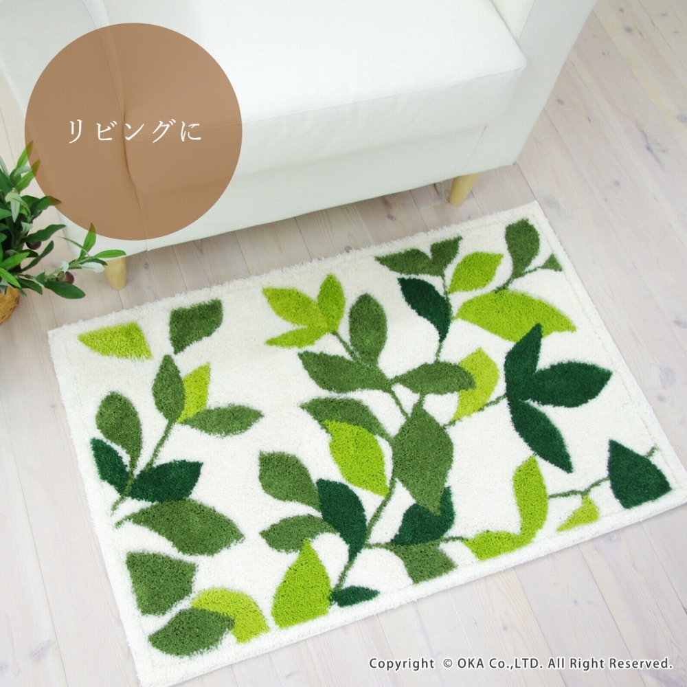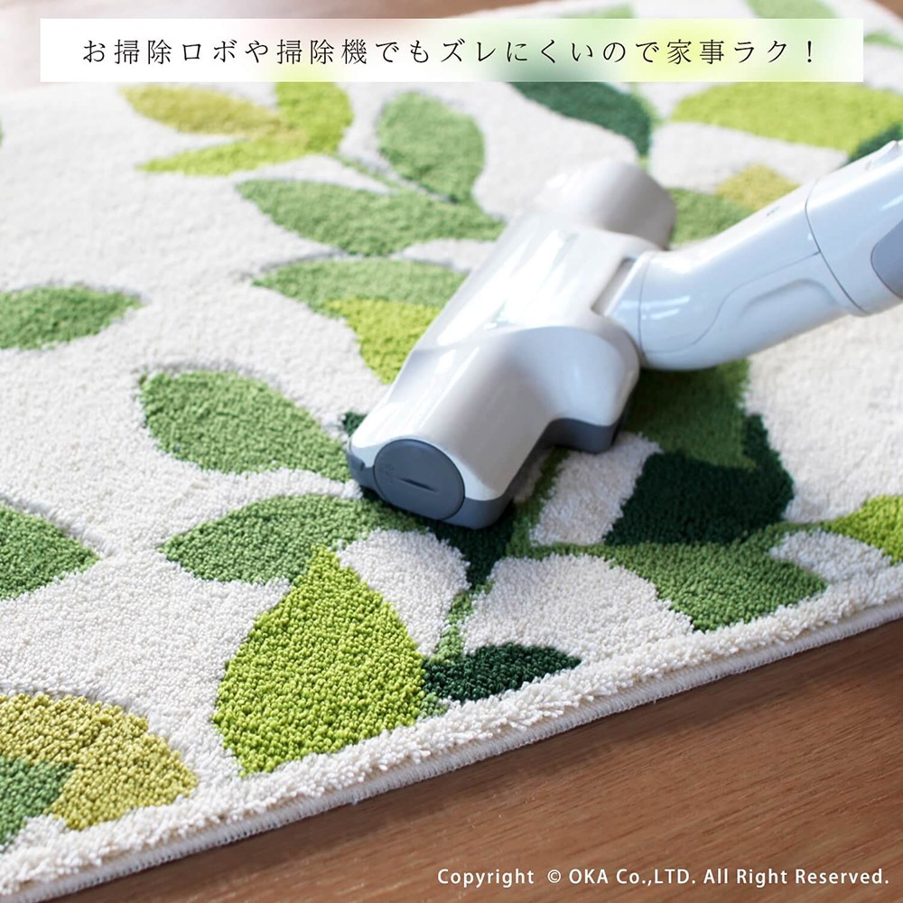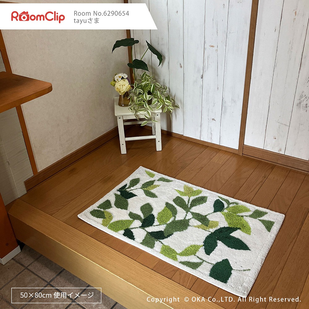 洗えるコーナー吸着玄関マットリーフグリーン2 約50cm×80cm ( 日本製 洗える おしゃれ アイボリー グリーン )