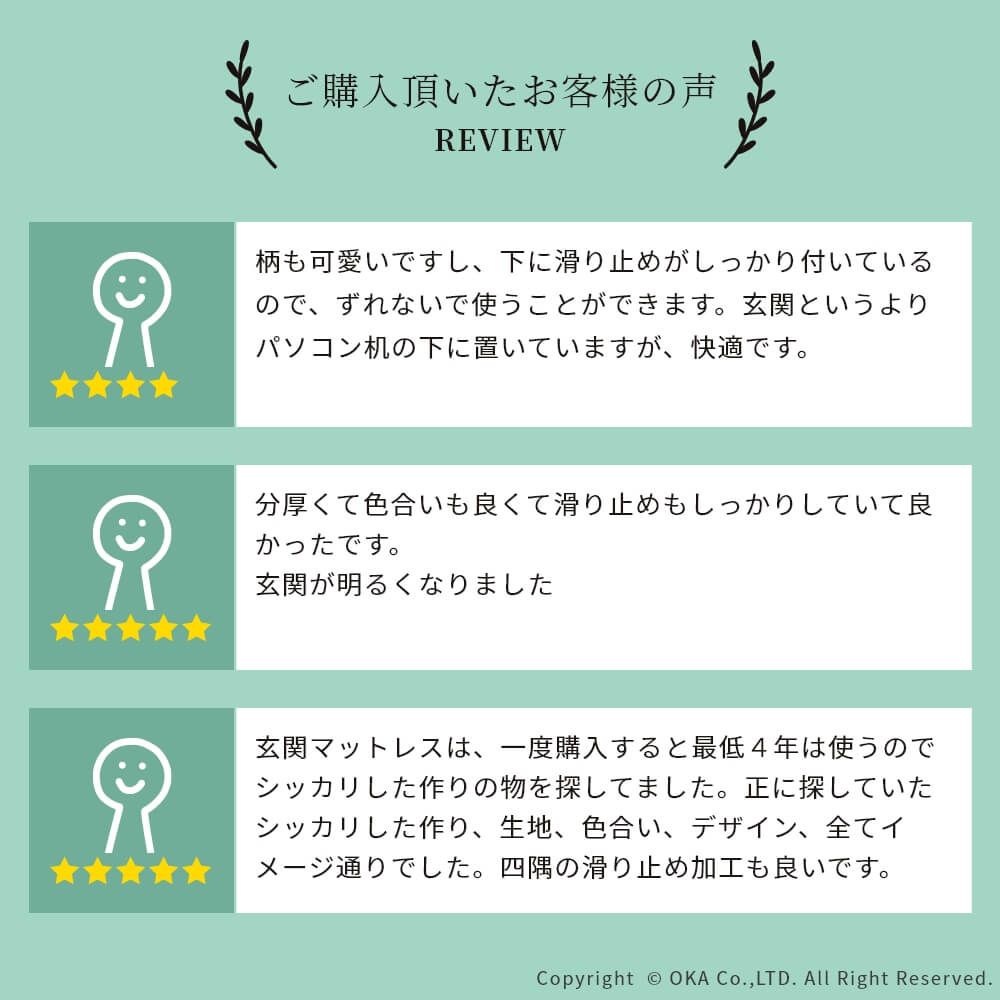 - アクリル100%(抗菌防臭加工)、裏面すべり止め加工