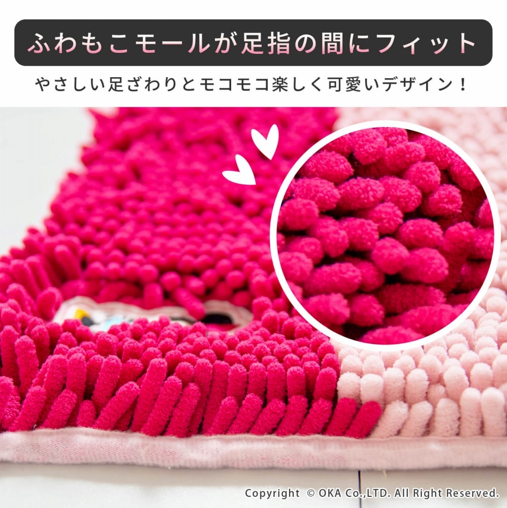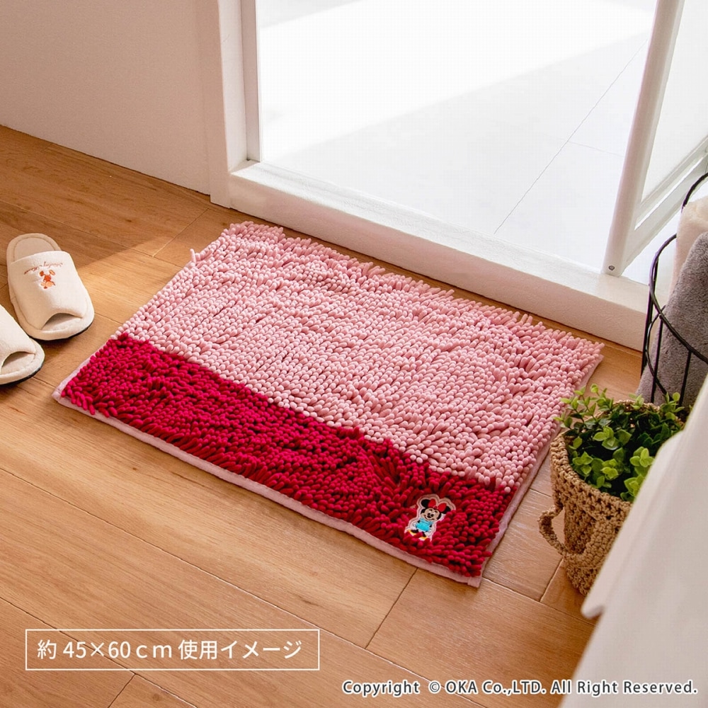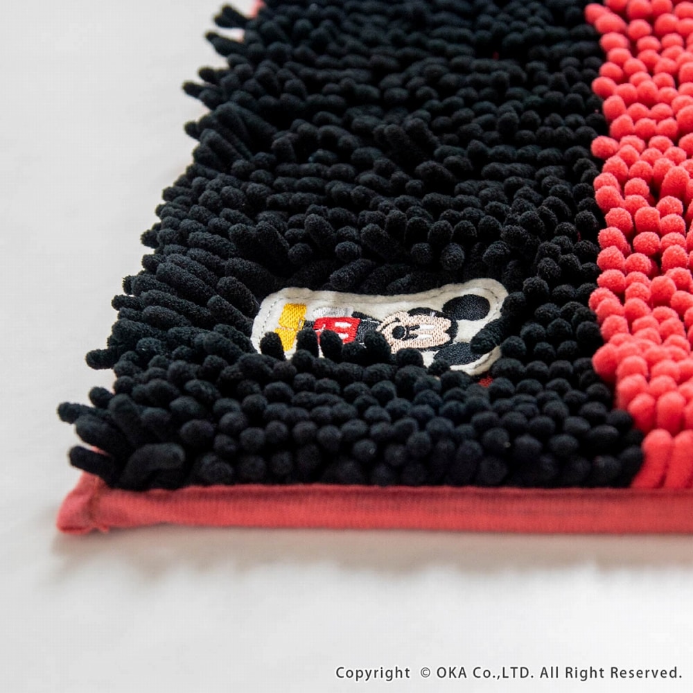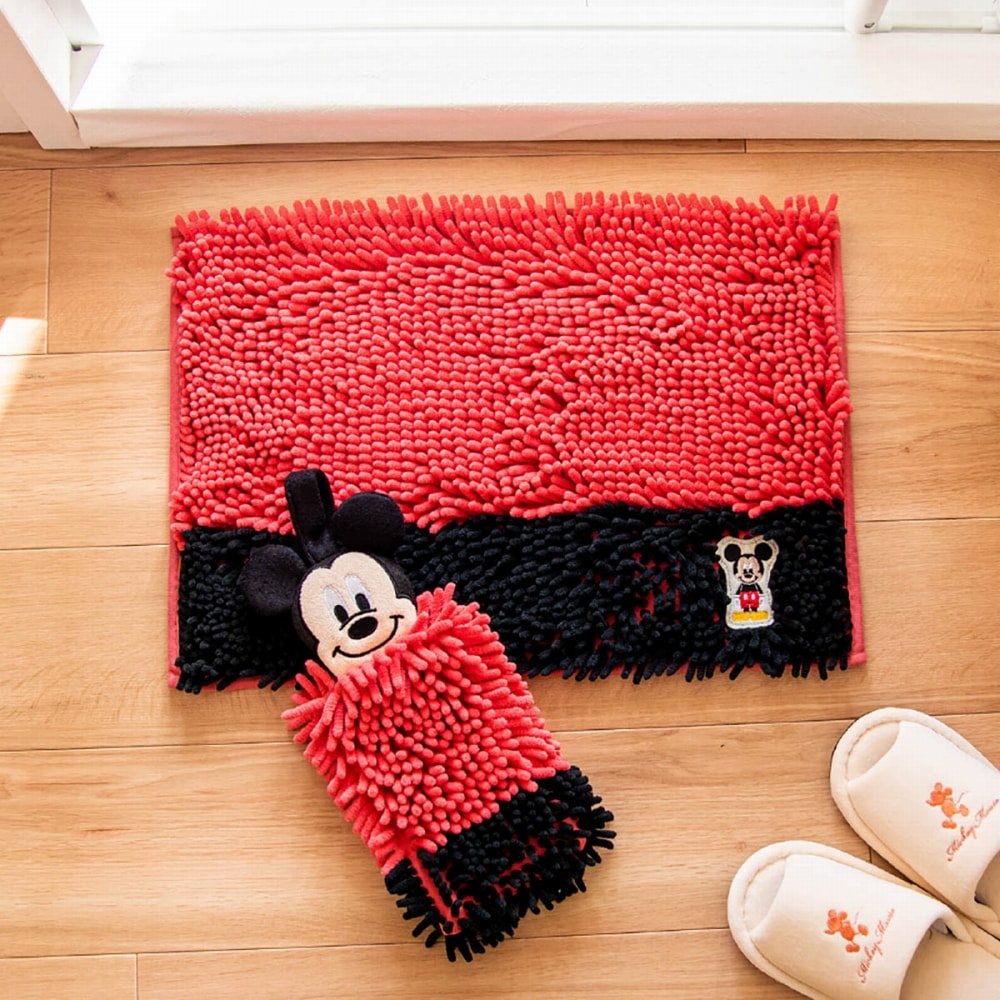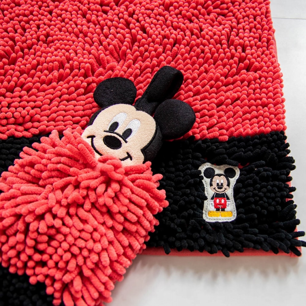 ディズニーの人気キャラクターのアップリケが刺繍された優しい肌触りのバスマットのツートンカラー。 ミッキーはブラック、ミニーはピンクとそれぞれのキャラクターに合ったカラーで楽しいマットに仕上げました。敷いた空間をキリッと引き締めるツートンカラーの太めのボーダーデザインは、クールな印象を与えます。毛足の先端が太く丸まったやさしい肌触りのマイクロファイバー繊維が、スッと水分を吸水。 足元をやさしいやわらかさが包み込むたまらないモールタイプのバスマットです。人気のキャラクターがたくさん揃っているモールバスマット。 家族でそれぞれ好きなキャラクターを決めてたり、気分によって変えてみたり毎日が楽しくなるようなそんな1枚です。