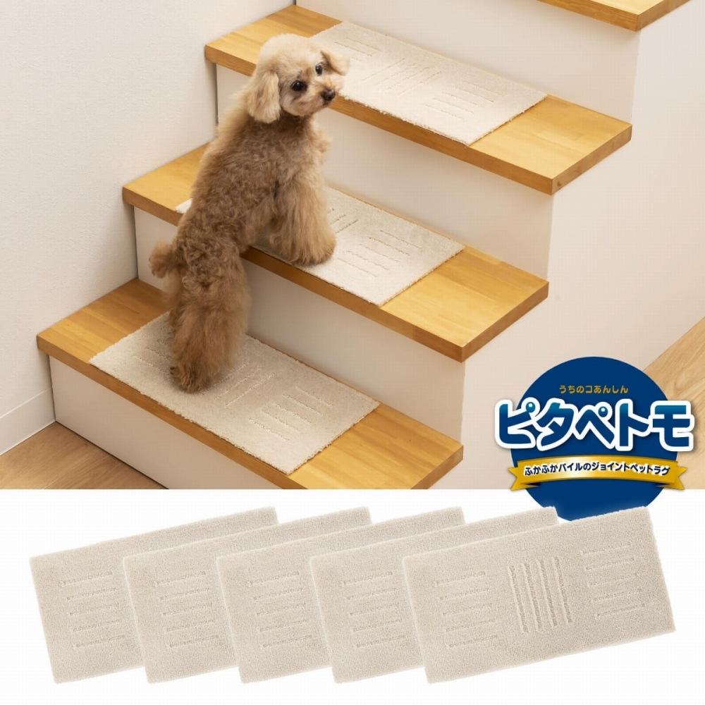 ピタペトモ 階段マット 約22cm×45cm 5枚入り ( 洗える ミニサイズ タイルマット 裏面吸着 ジョイントマット 日本製 廊下敷き 床暖房対応 )