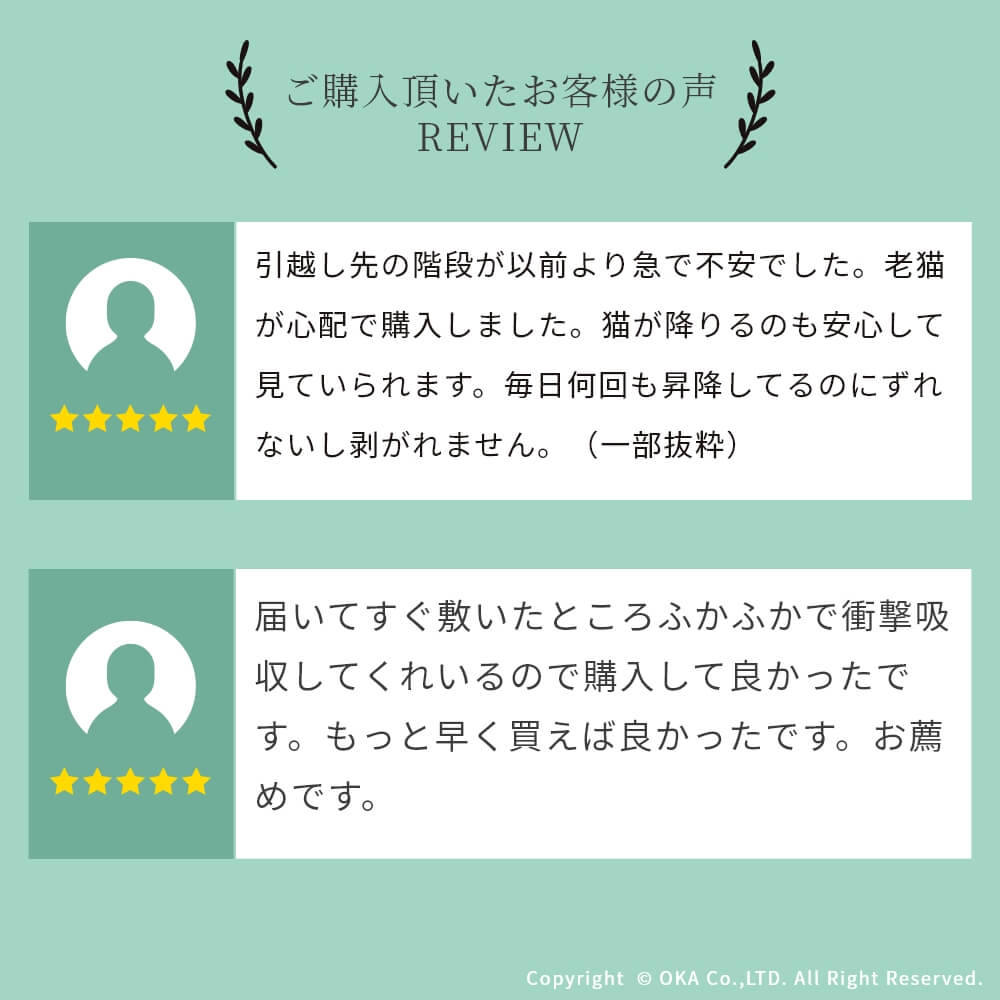 ペットが出入りする掃き出しの窓のところに敷きました。 邪魔にならずピッタリサイズ、高級感もあり大満足です。