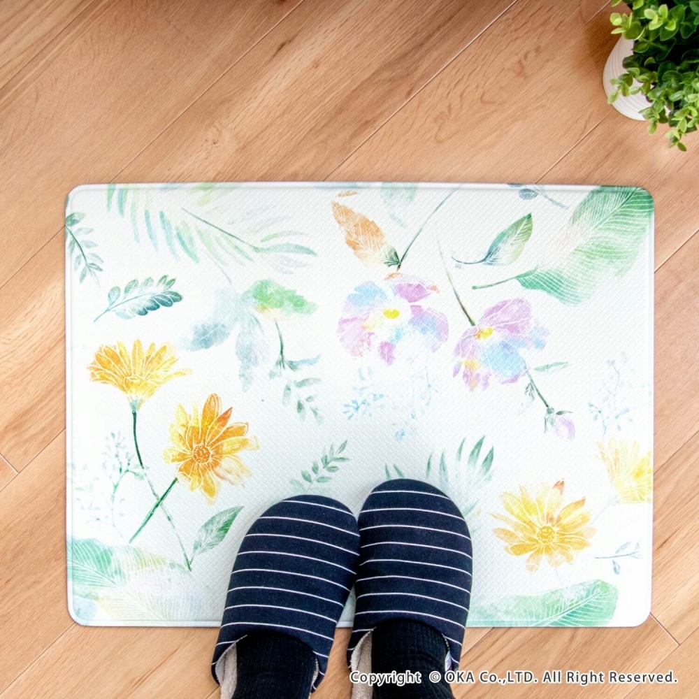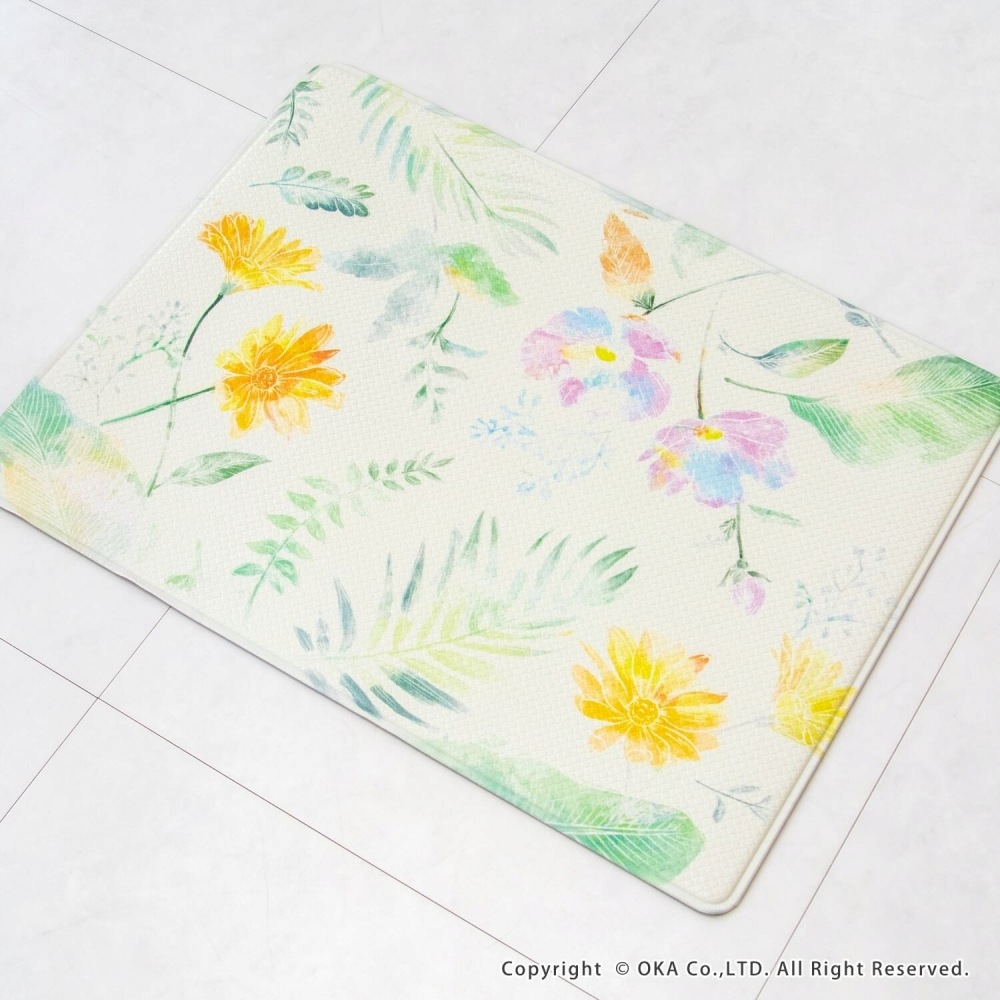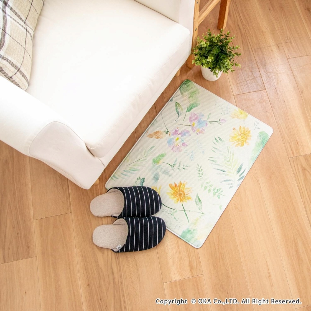 拭いてお手入れするタイプの洗面台マットです。汚れや水をはじくので拭くだけでキレイにでき、洗濯の必要がありません。厚さ約5mmのもっちりクッション。床掃除のついでにマットもフローリングワイパーでお掃除できるのでとってもお手軽です!シンプルな使い心地で床面を保護します。キッチンのL字の短い場所やベッドサイド、玄関にもおすすめです。 ※床暖房の長時間の連続使用や高温でのご使用は避けてください。 ※すべり止め加工、撥水加工は施されておりません。