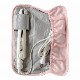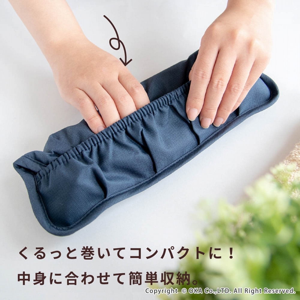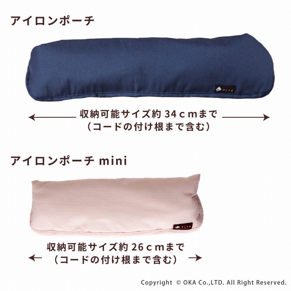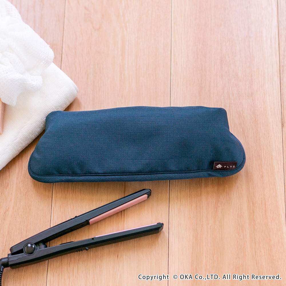 ミニサイズのヘアアイロンを持ち運ぶのに便利なヘアアイロンポーチミニ。コンパクトになるので、カバンなどに入れてもかさばりません。コードはポケットに収納でき、直接熱が当たらないので、コードを傷めるのを防ぎます。くるくる巻いて簡単収納。巻き式なのでそれぞれのヘアアイロンに合ったコンパクトなサイズに折りたためます。クッション性を持たせたので、ヘアアイロンを優しくカバーしてくれます。 ※耐熱加工生地を使用していますが、使用する際はアイロンの熱が十分に冷めてから収納してください。 ※全長約26cmまで収納可能ですが、メーカーや形状によってはサイズ内でも入らない場合がございます。