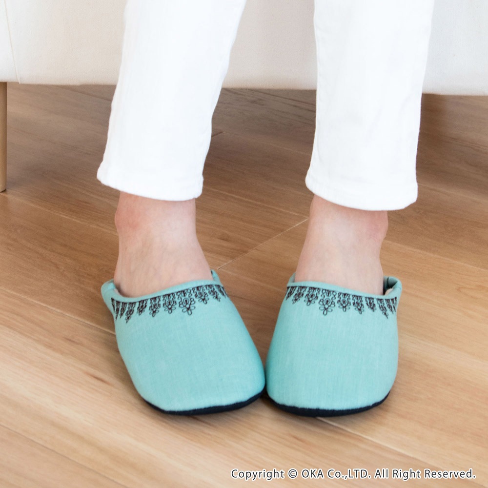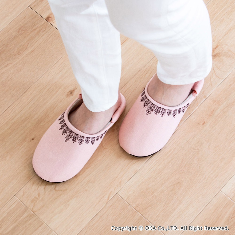 レース刺繍のルームシューズ ( 洗える スリッパ バブーシュ 足のサイズ約24.5cmまで対応 )
