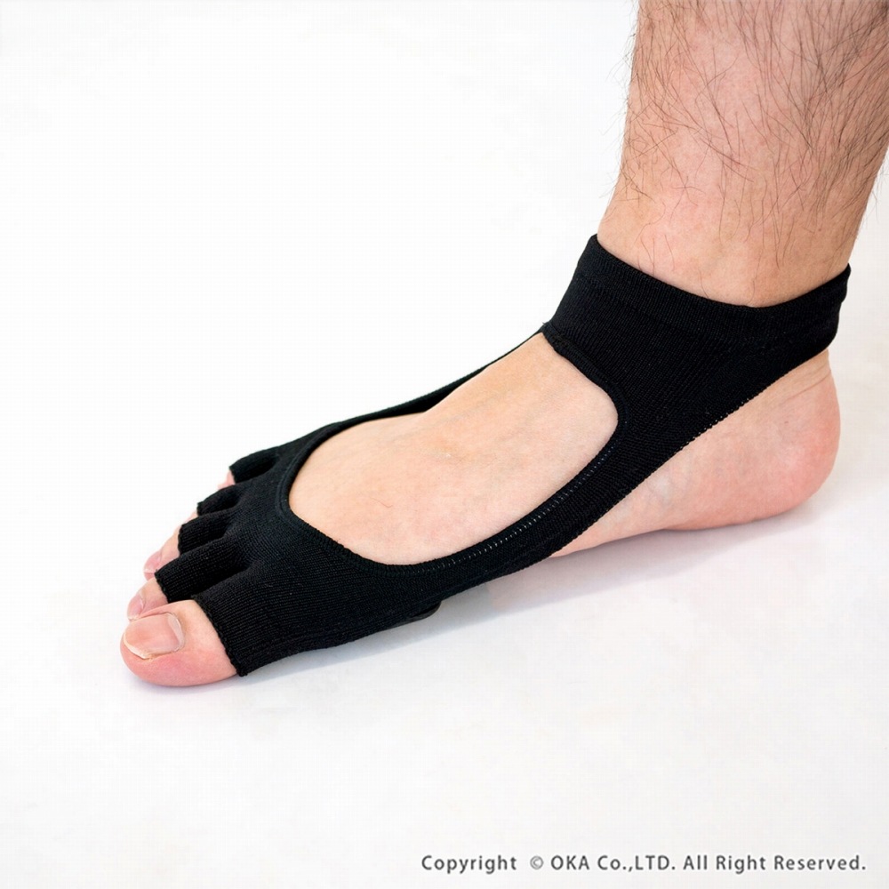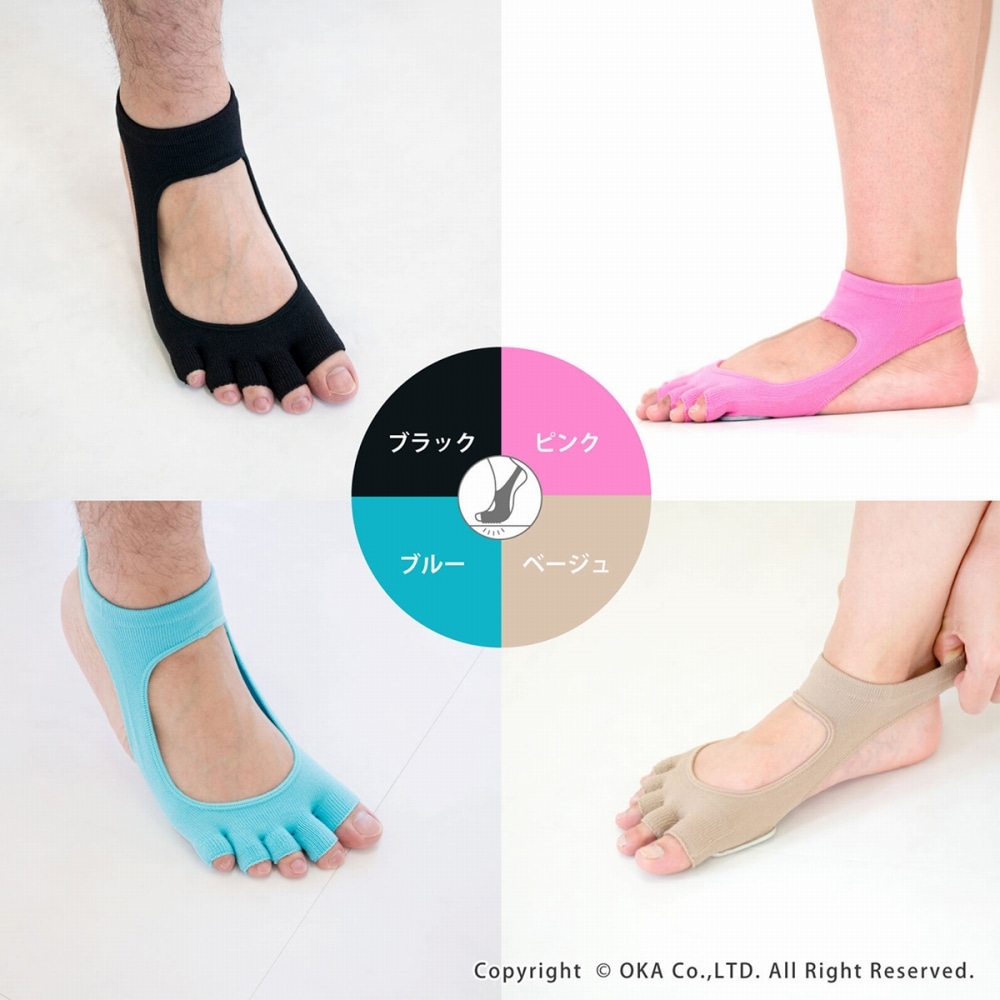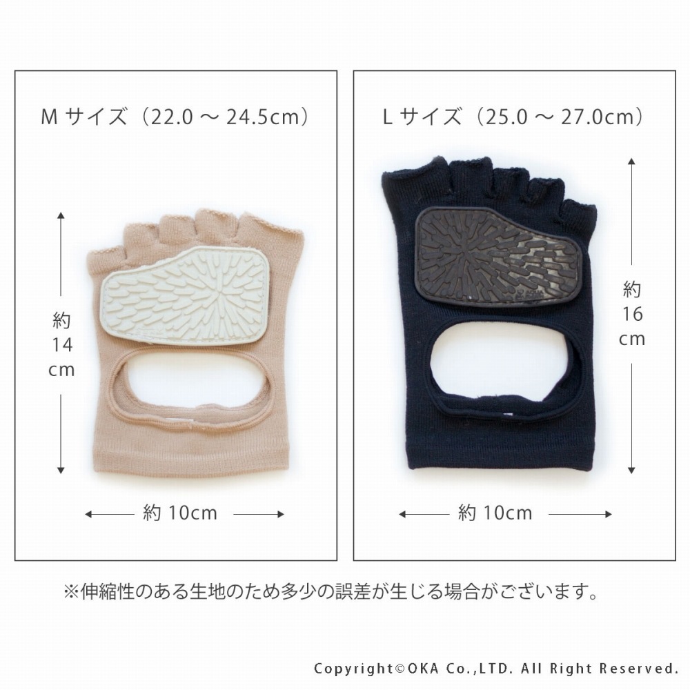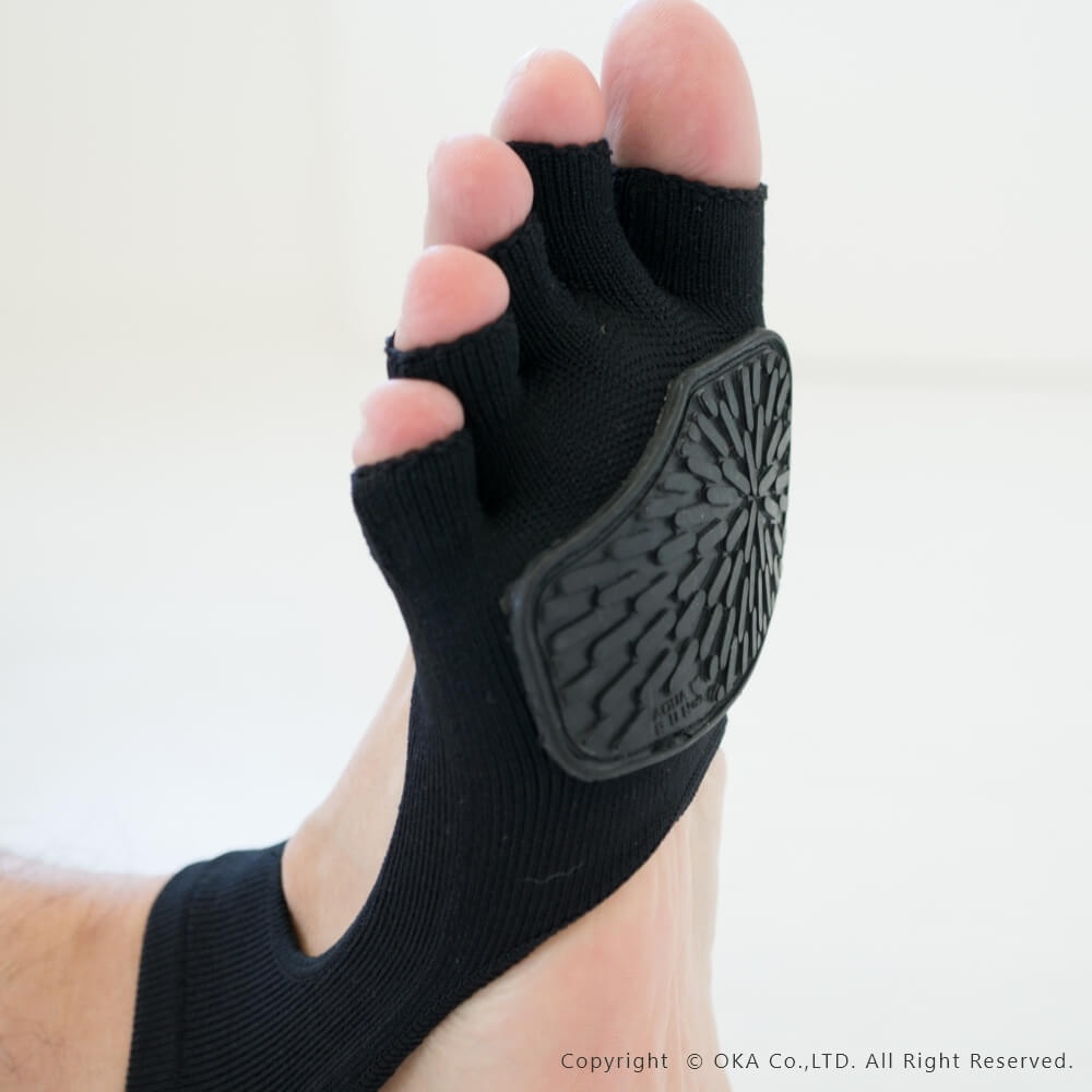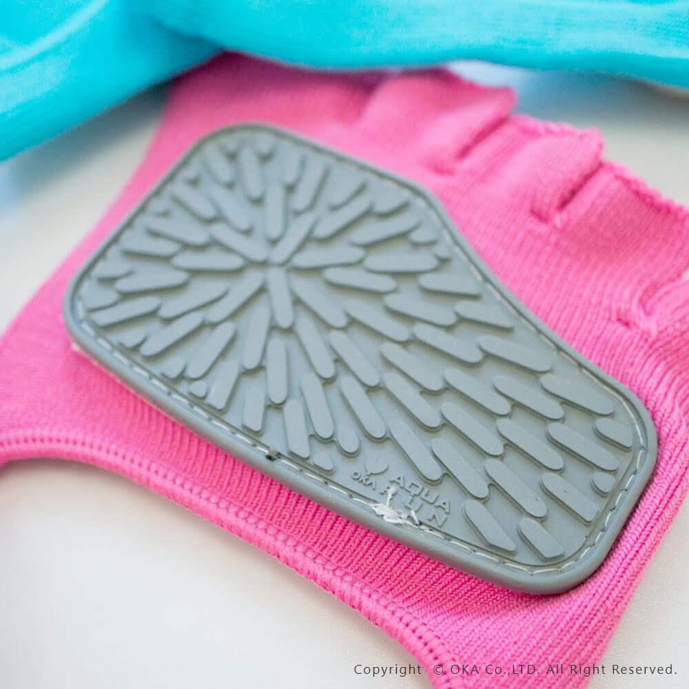 プールでのアクアウォークやアクアエクササイズを行う際滑らないように履くアクアシューズ。持ち運びが大変だったり、お手入れが面倒だったり…もっと手軽に水中運動を楽しんでもらいたい。そんな思いからオカ株式会社はゼロからプールエクササイズ専用サポーターの開発に取り組みました。水着の素材を参考に柔軟性と排水性を兼ね揃えたオリジナル生地を開発。激しい動いても破れず、だけどお手入れは簡単。また、5本指靴下の開発を参考に指先開放型を採用。ふんばる力をサポートしより快適なアクアライフの手助けをします。特殊パターン設計で排水性と高摩擦性能を実現した、独自開発の水中すべり止めソール。水中での滑りや転倒を予防し、快適でリズミカルなステップが踏める高いグリップ力を発揮します。また快適なすべり止めソールに加えまるで素足のような軽さが特徴。足への負担を軽減します。