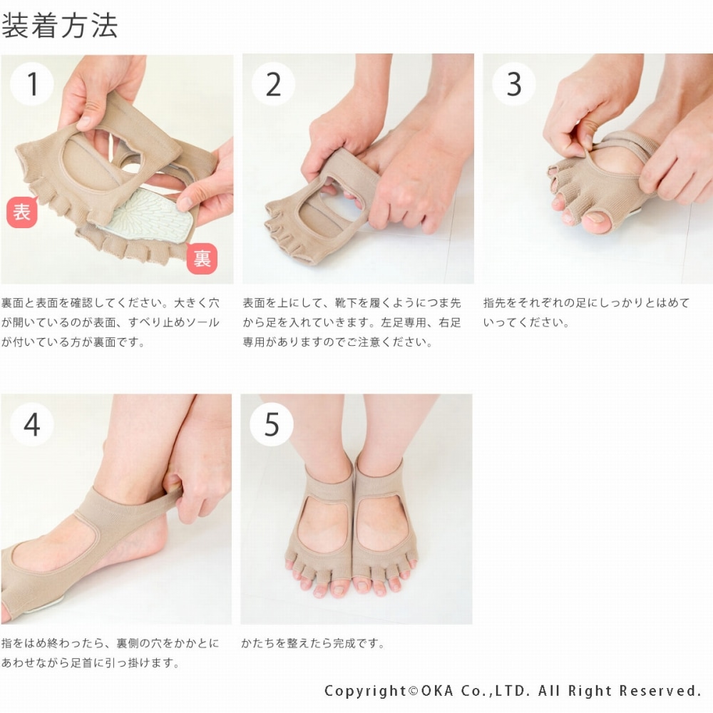 指をはめ終わったら、裏側の穴をかかとにあわせながら足首に引っ掛けます。
