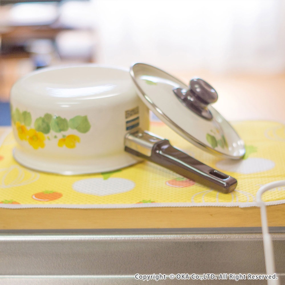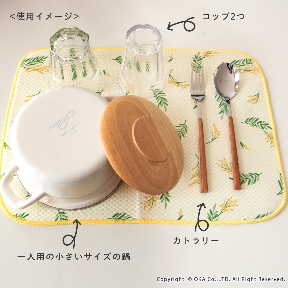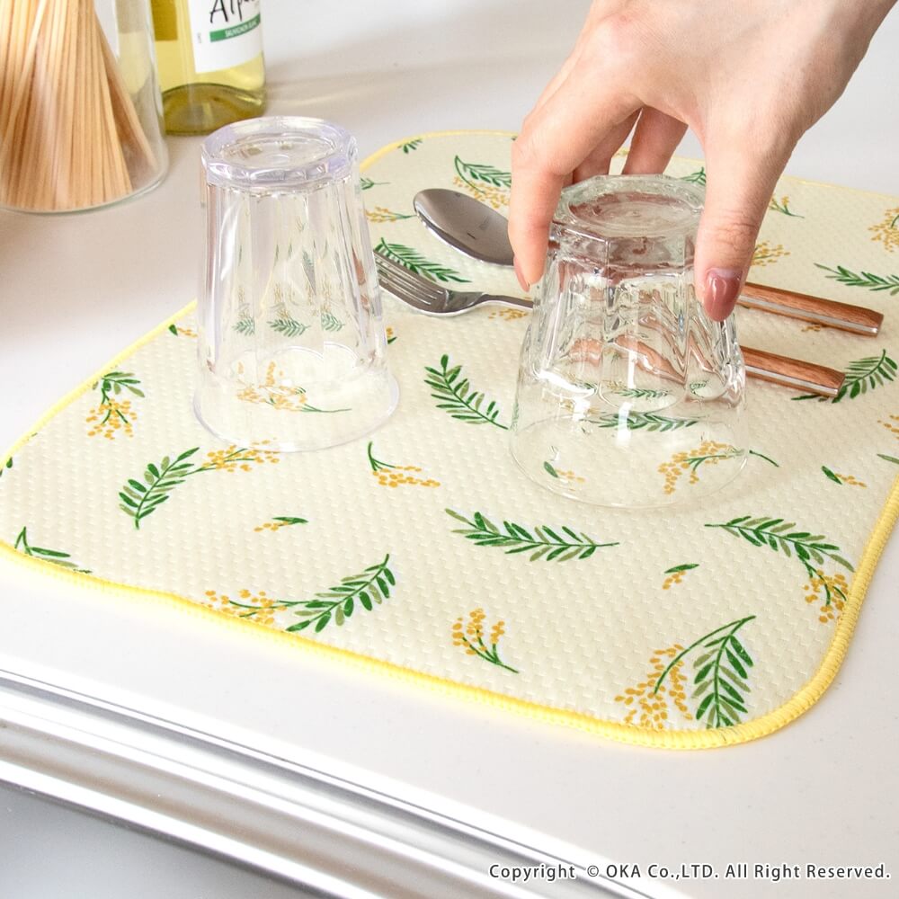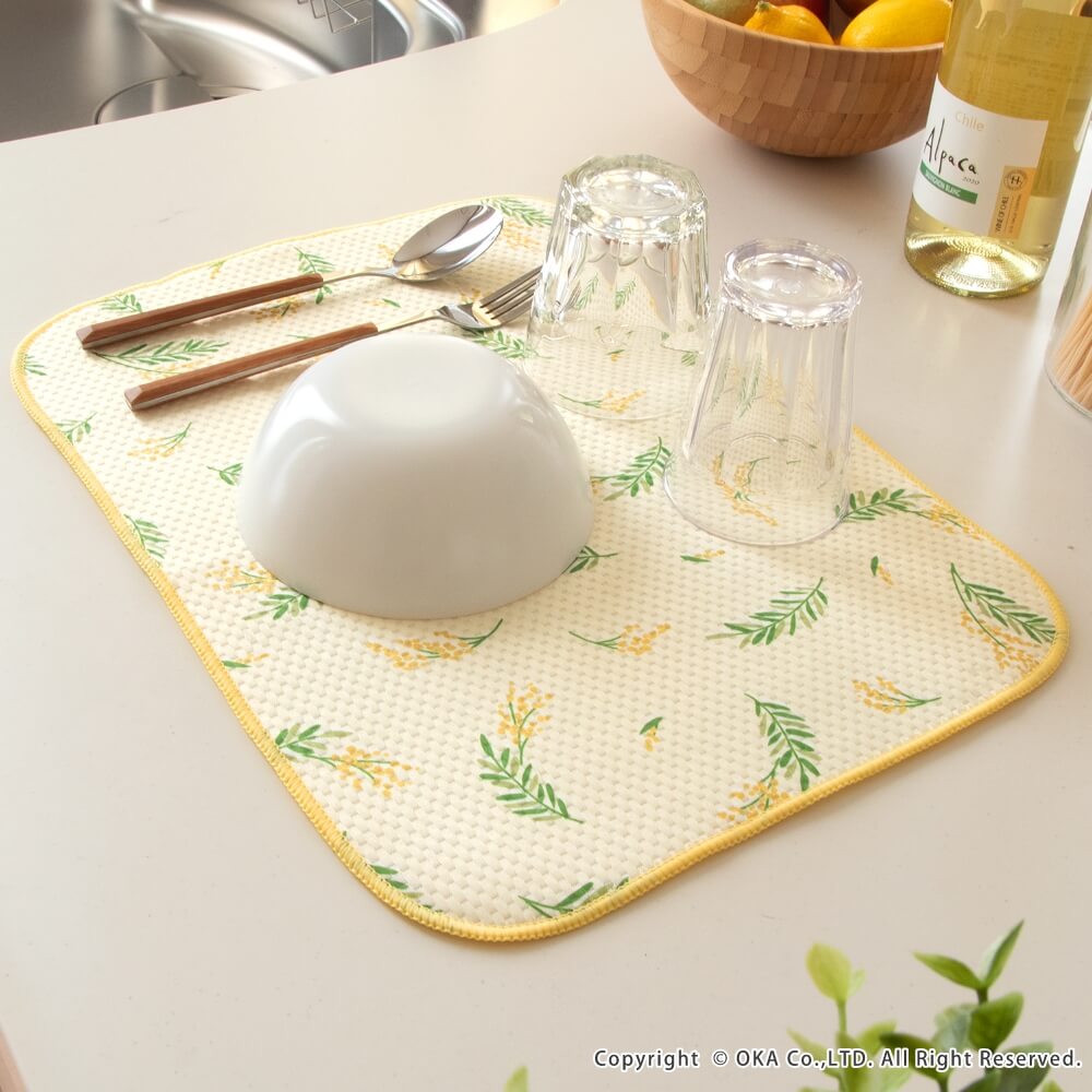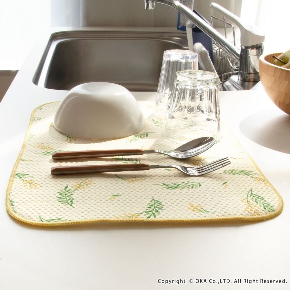 食器の一時的な置き場や、大きなフライパンやお鍋などの乾燥するときに便利な吸水マットです。