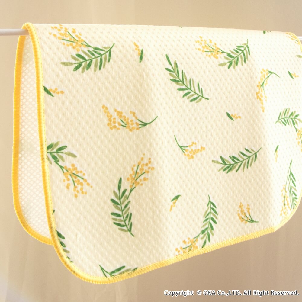 清潔感のある植物柄のミモザをモチーフにしたミモザブーケです。