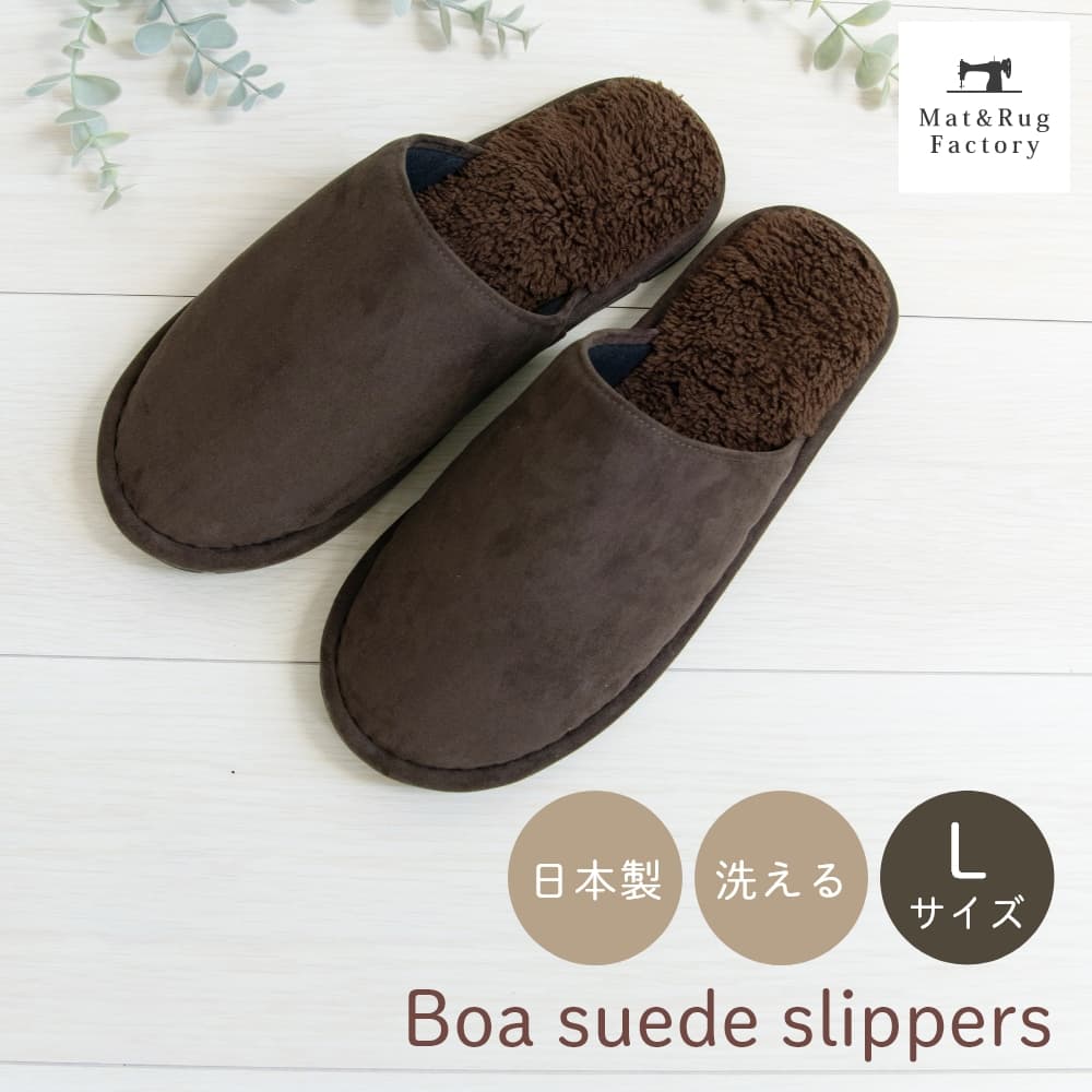 日本製 ボアスエードスリッパ Lサイズ ( ルームシューズ 洗える あったか 秋冬 来客用 室内履き 室内 ギフト プレゼント )