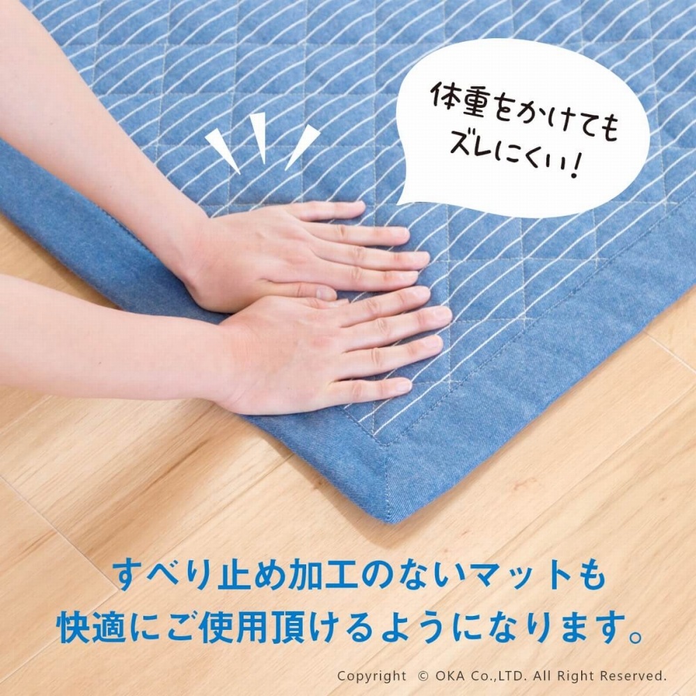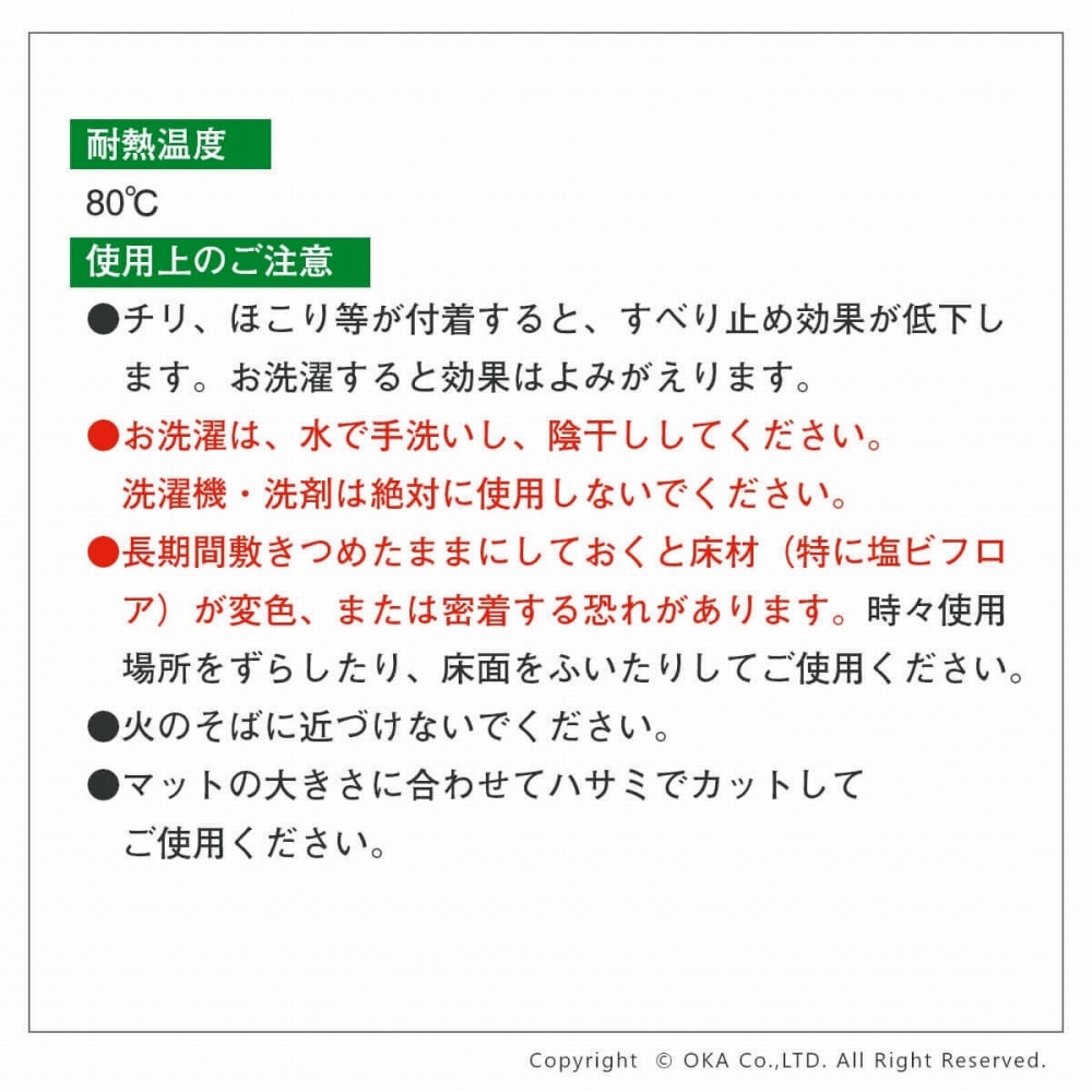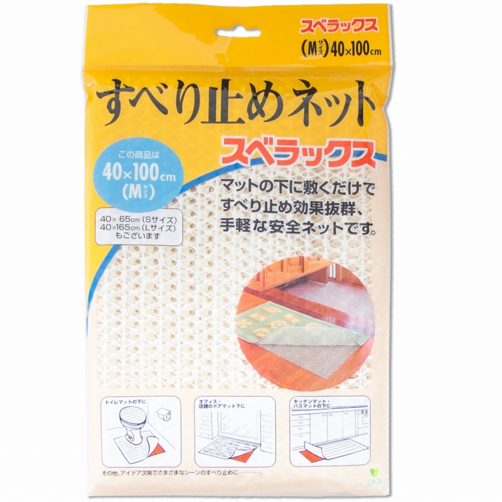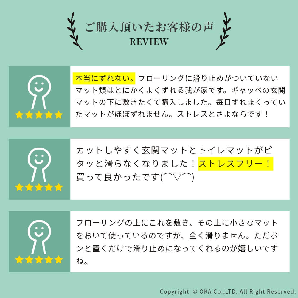 マットと床の間に敷くことによってズレや滑りを防止するすべり止めネットです。滑り止め加工されていないタオル地のマットや、人通りが多くてすぐにマットがずれてしまうような場面で活躍します。スペースに合わせてはさみで簡単にカット出来るので、いろんな場所にお使いいただけます。細かな網目が床とマットに吸着しズレを防止します。ネット自体が立体的な構造なのでどの方向の動きにも対応しており、ホコリや汚れで滑り止め効果が低下した際も水洗いして頂くことで効果が戻ります。玄関マットやラグの下に、手軽な安全ネットです。