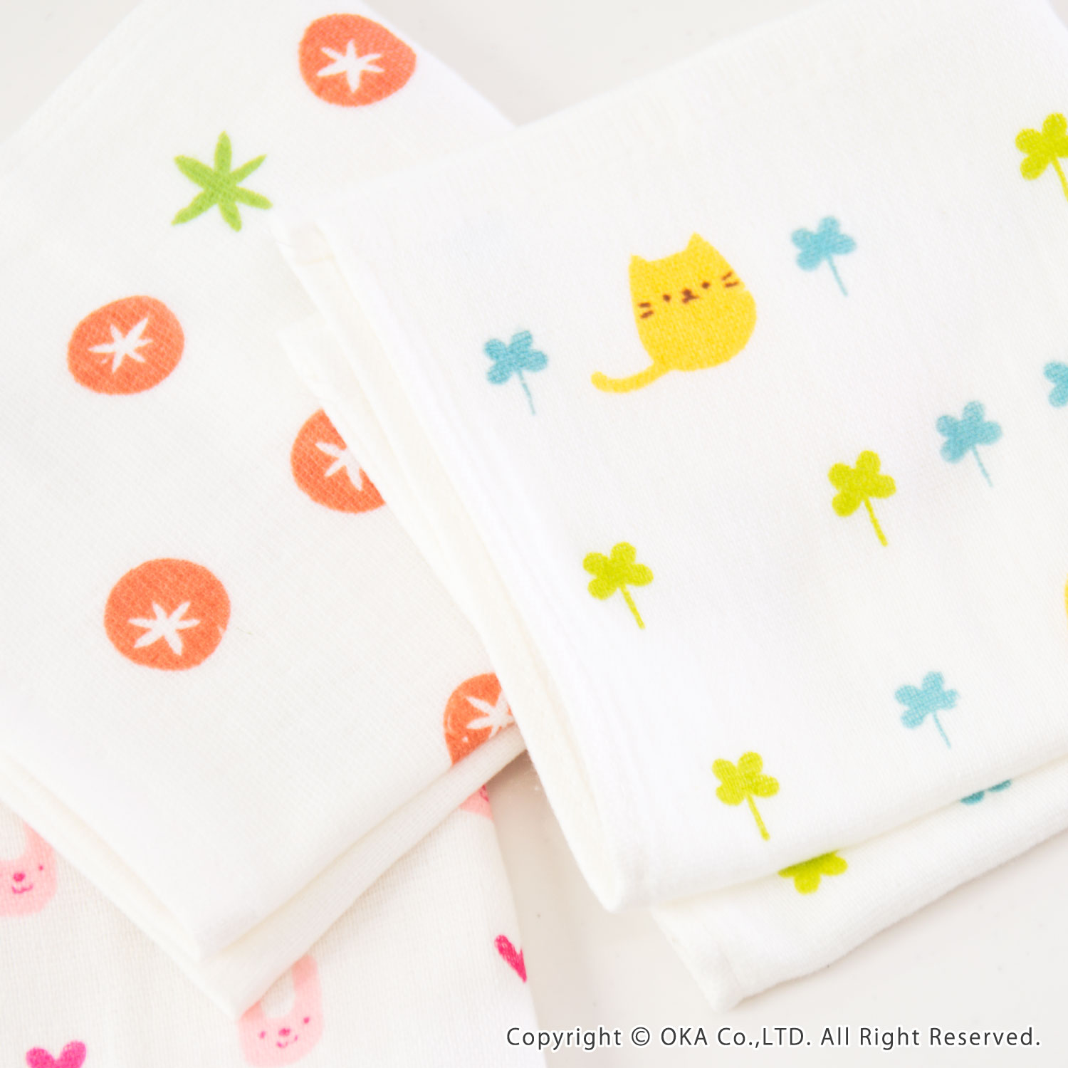 デザイン面はガーゼ、無地面はタオル地のパイルになっています。