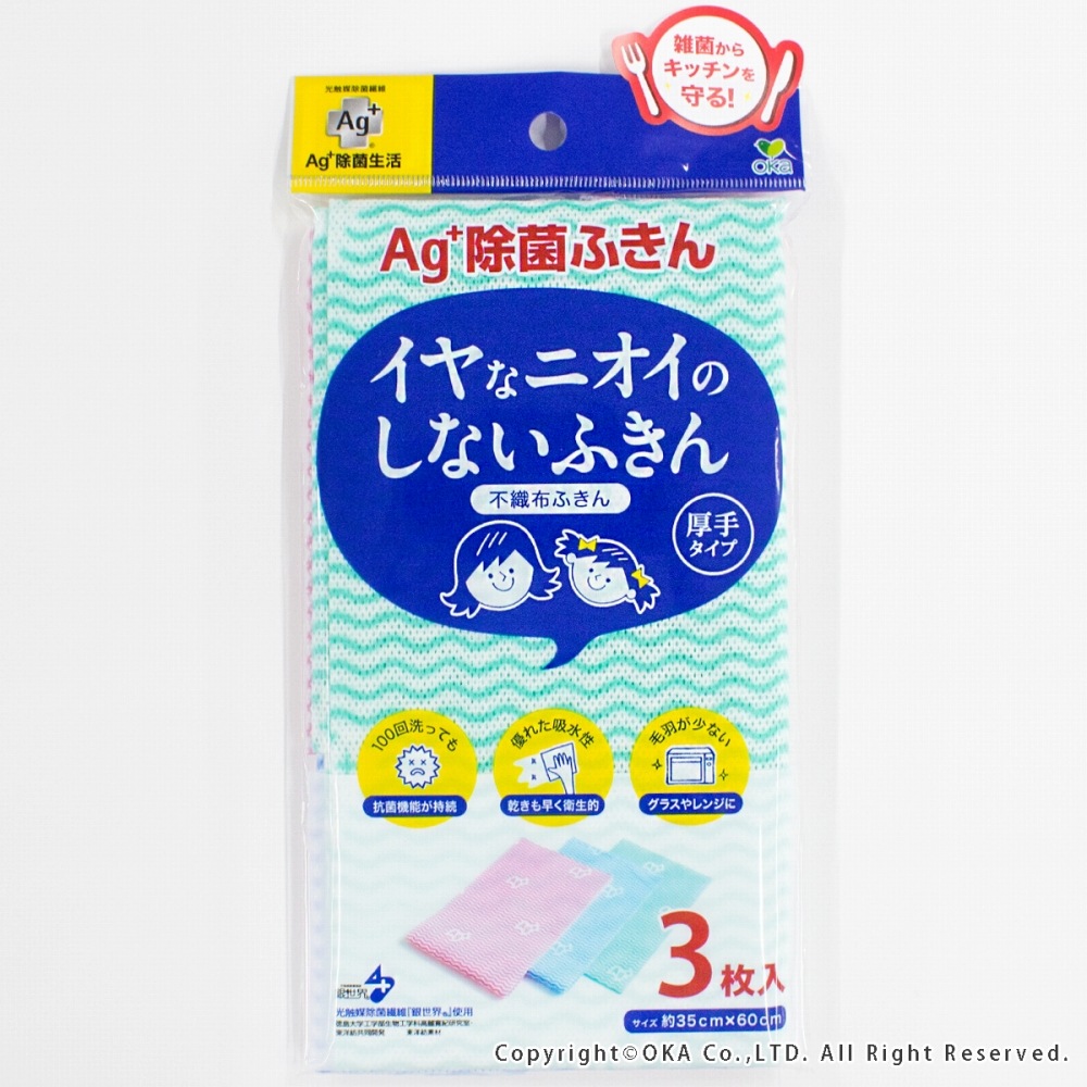 Ag+イヤなニオイのしない不織布ふきん 3枚入 ( カウンタークロス 除菌ふきん フキン 布巾 カットできる 台拭き 業務用 )