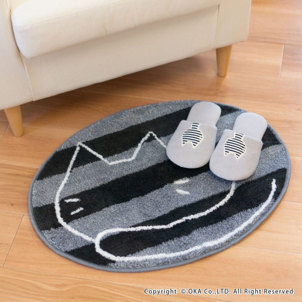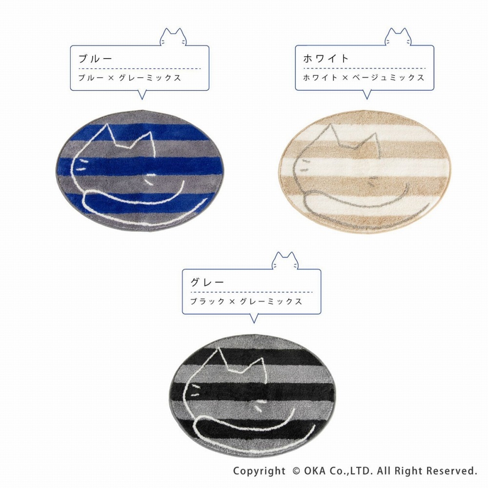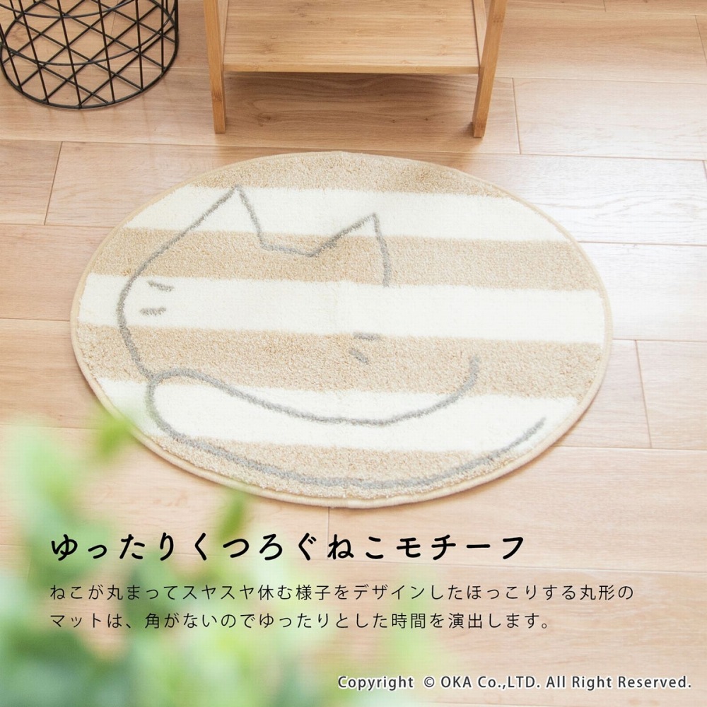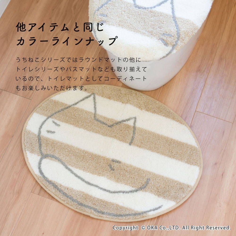 マット&ラグファクトリー限定の特別なシリーズ「うちねこ」から円形のマルチマットができました。ゆったりとくつろぐねこをモチーフにしたほっこりできるデザインです。ねこ柄の部分はくしゅくしゅした糸を使い、ボーダー部分より少し低くなるようにこだわりネコ柄がくっきり見えるこだわりも。裏面は全面にすべり止め加工を施しています。また、洗濯可能なマットですので、汚れてしまってもすぐにお洗濯いただけます。(ドラム式洗濯機の場合、ご使用の取扱説明書をご確認いただき、お洗濯してください。)