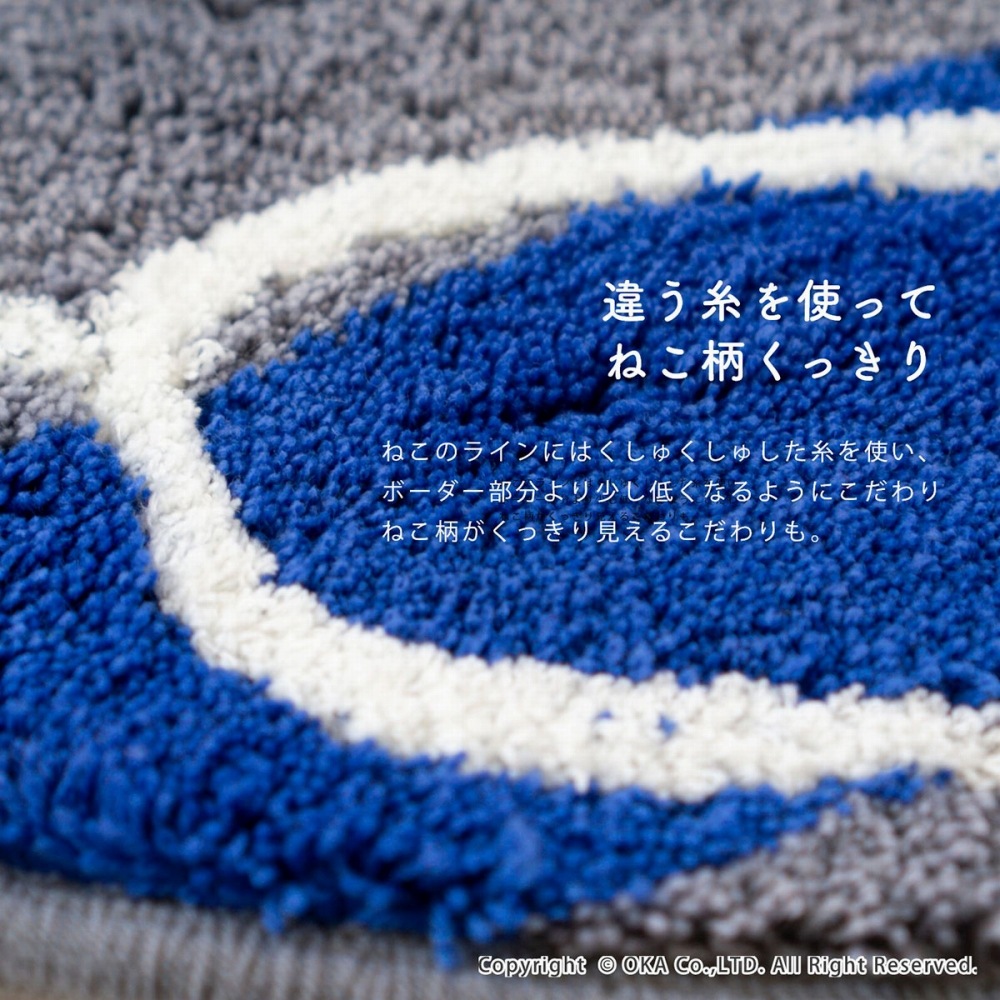 乾度良好うちねこ バスマット 約45cm×60cm ( ボーダー 猫柄 洗える お風呂マット 吸水 速乾 抗菌 防臭 )