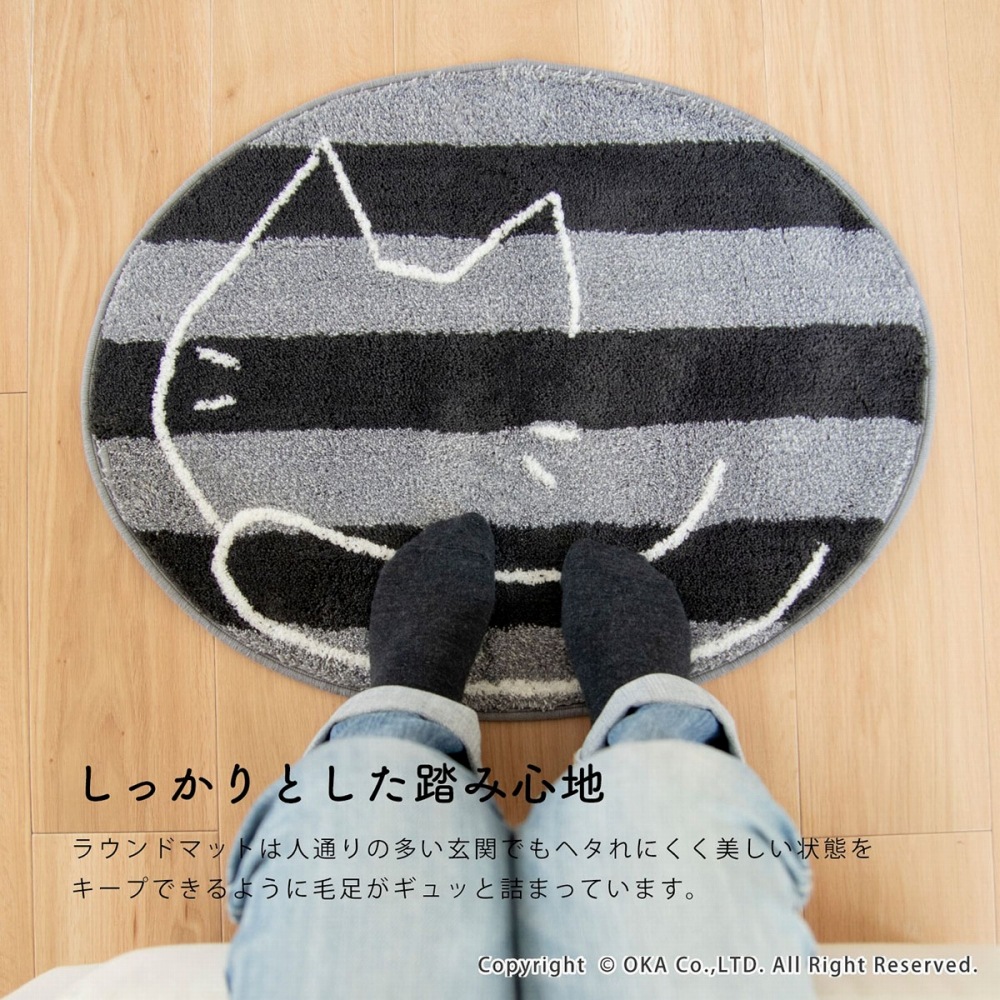 うちねこ ラウンドマット 約52cm×67cm ( 玄関マット マルチマット 猫柄 ネコ )