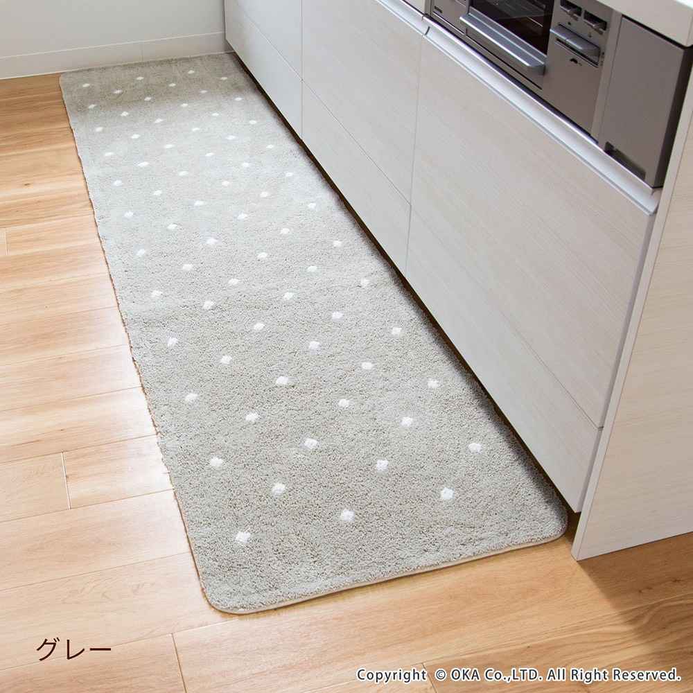 水玉2キッチンマット 約45cm×180cm ( 洗える 台所マット ドット 大判 ロング )
