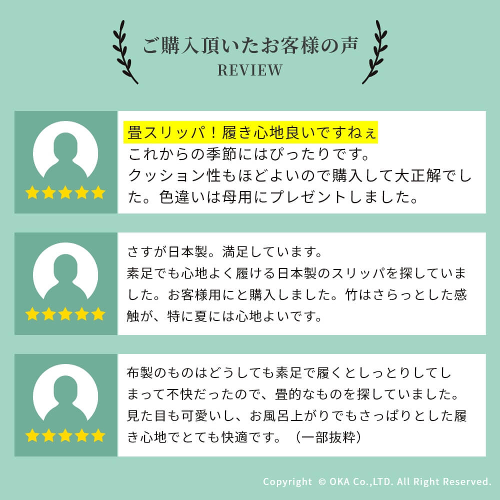- 甲表:綿100%、中敷:い草、底面:塩化ビニル
