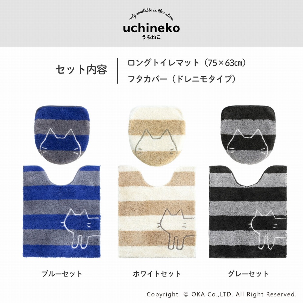うちねこ トイレ2点セット (ロングトイレマット+トイレフタカバー ドレニモタイプ) ( 洗える 猫 ネコ )