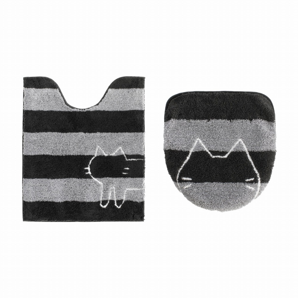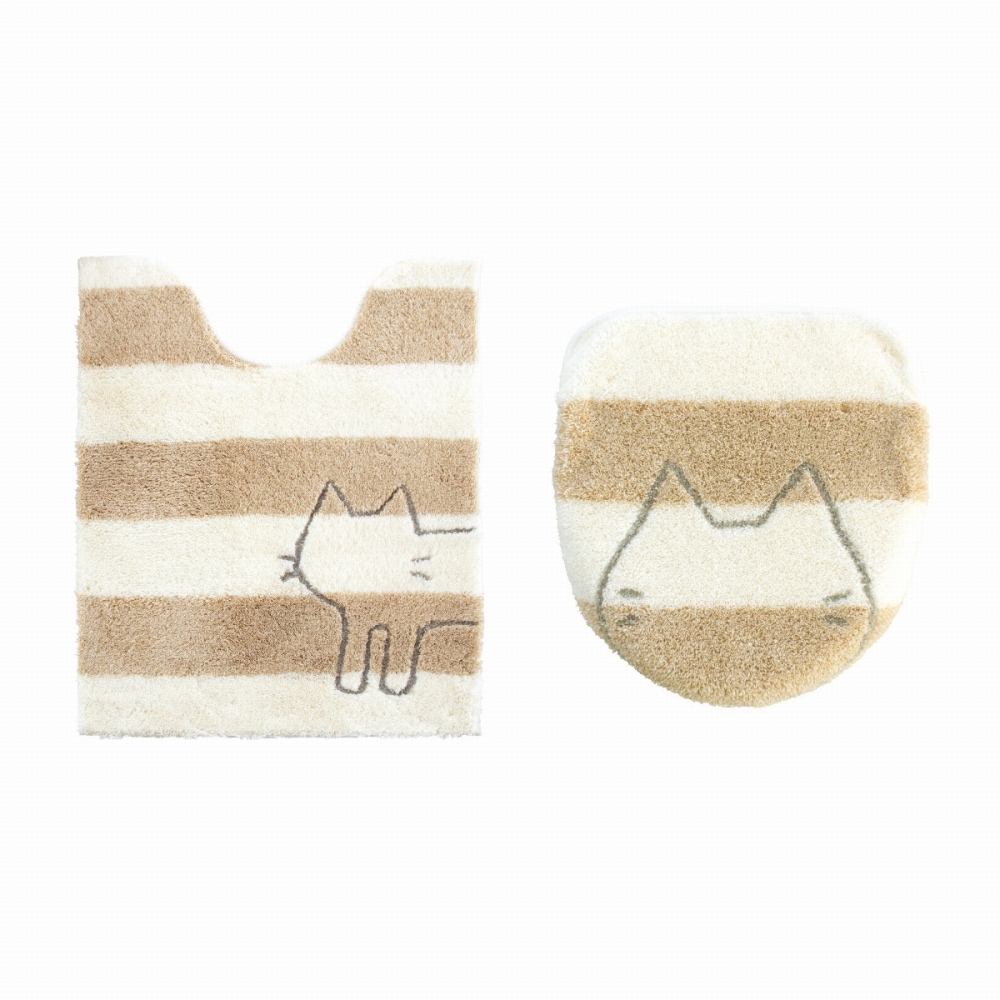 うちねこトイレタリシリーズの2点セットです。ふかふかマットにちょこんと猫が覗くほっこり可愛いトイレファブリックです。