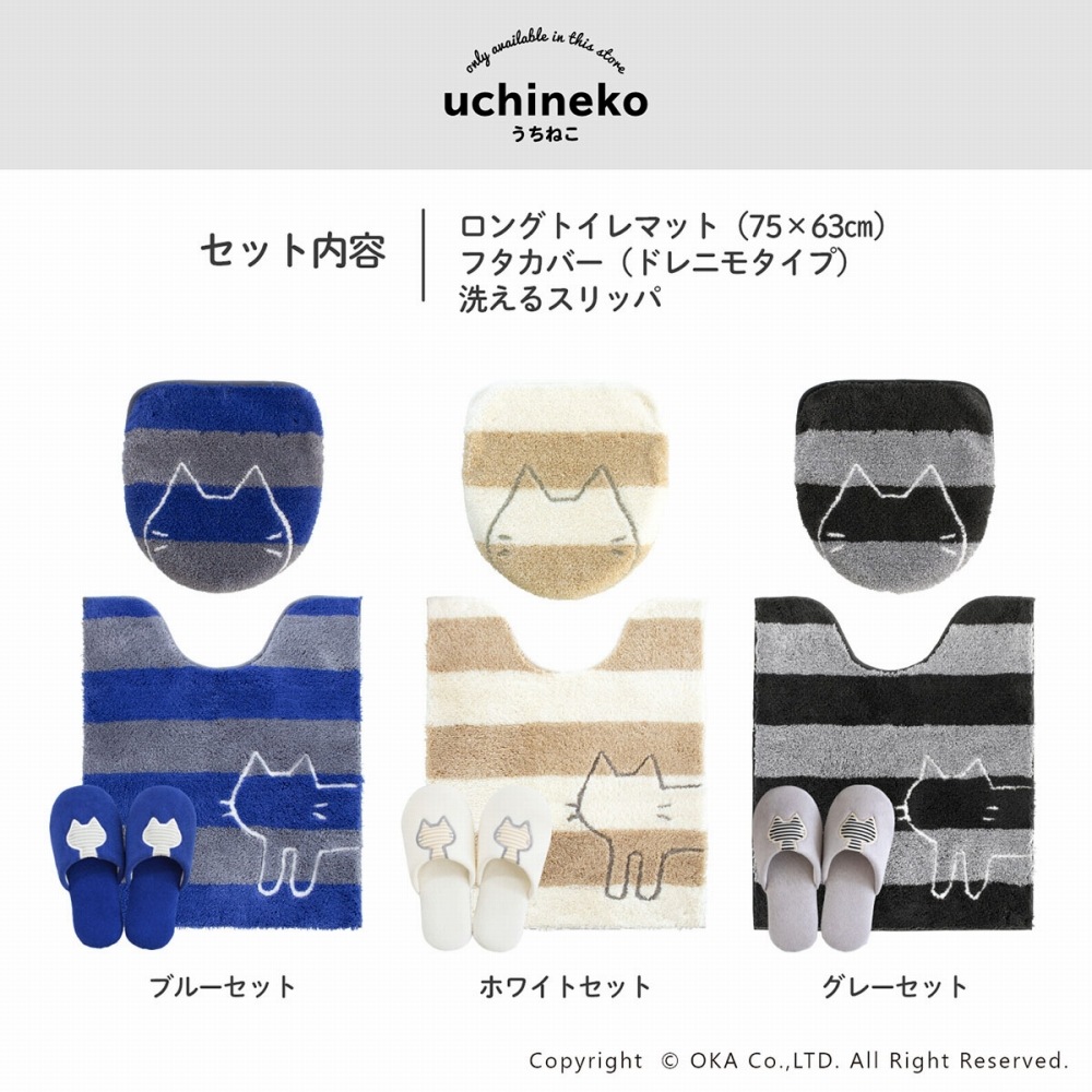 うちねこ トイレ3点セット (ロングトイレマット+トイレフタカバードレニモタイプ+スリッパ) ( 洗える 猫 ネコ )