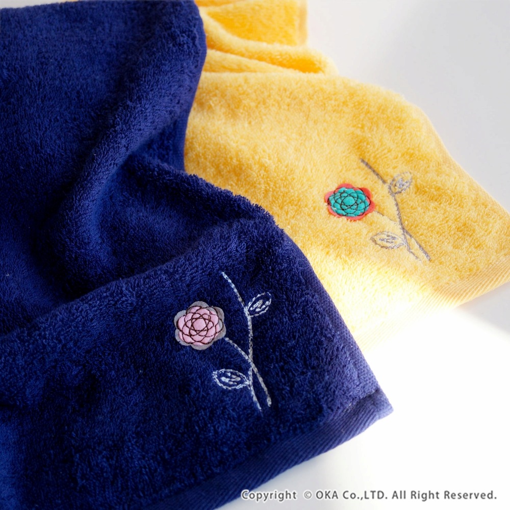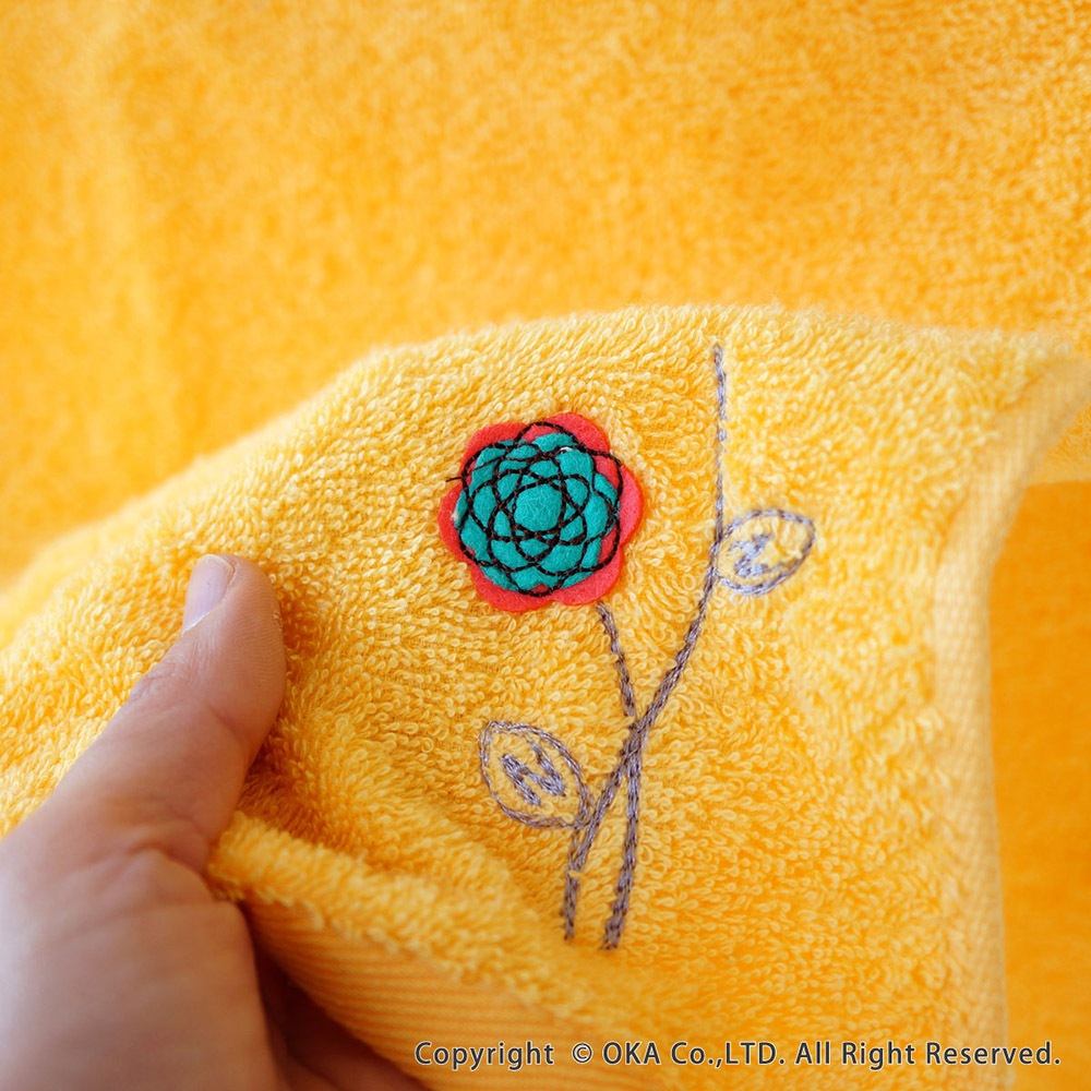 エトフのナチュラルさを忘れず、シンプルで少しモダンな北欧スタイルを提案します。ベースカラーは北欧の夜空をイメージした透明感のある濃紺と、待ちわびた春に咲く花を表現したあたたかでみずみずしいイエローをセレクト。エトフの特徴でもある2枚重ねにした刺繍モチーフの切り絵のお花は、前回のエトフよりも繊細な表現を目指し、色のコントラストにもこだわりました。エトフの特徴でもある2枚重ねにした、お花の刺繍モチーフは前回のエトフより繊細で色のコントラストもはっきりさせました。サイズは77cm×34cm。厚すぎない使いやすいタオルなのでキッチンやトイレのようなデイリーユースにぴったりです。