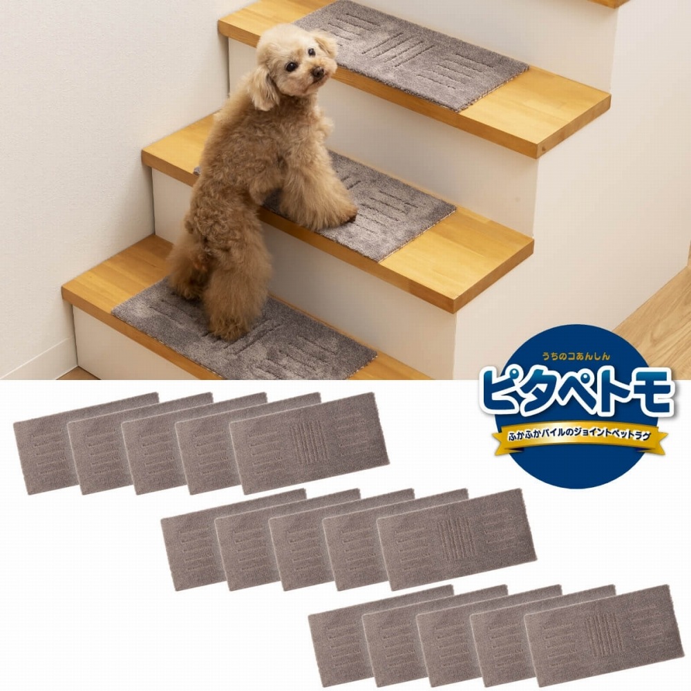ピタペトモ 階段マット 約22cm×45cm 5枚入り ( 洗える ミニサイズ タイルマット 裏面吸着 ジョイントマット 日本製 廊下敷き 床暖房対応 )