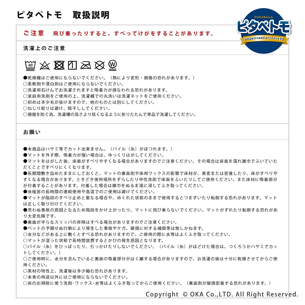 - 約45cm×22cm(マットの高さ 約9mm)※布製品につきサイズに多少の誤差が生じる場合があります。