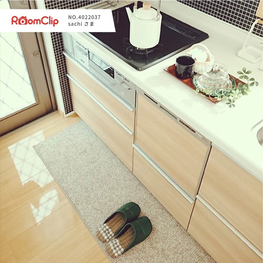 PLYSbaseキッチンマットはしなやかなやわらかさで、小さくたたんでお洗濯が簡単です。厚手タイプのものに比べて乾きが早く、毛羽立ちが少ないのが特徴です。(※お洗濯の際は洗濯ネットをご利用ください。)
