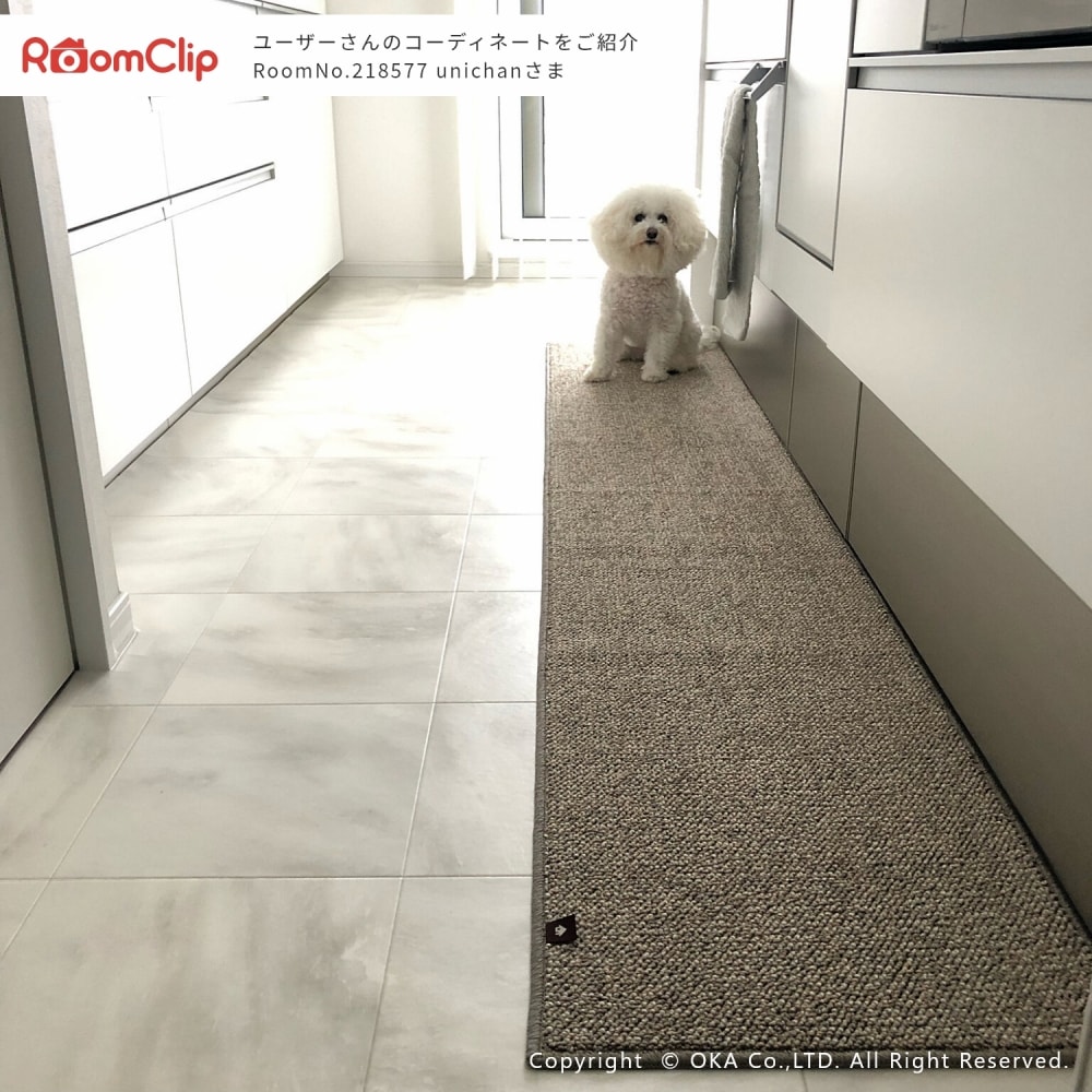 薄手ですが、ループ形状のキッチンマットなので、ほどよい弾力があり、クッション性に優れています。ブランドタグがおしゃれなワンポイント。