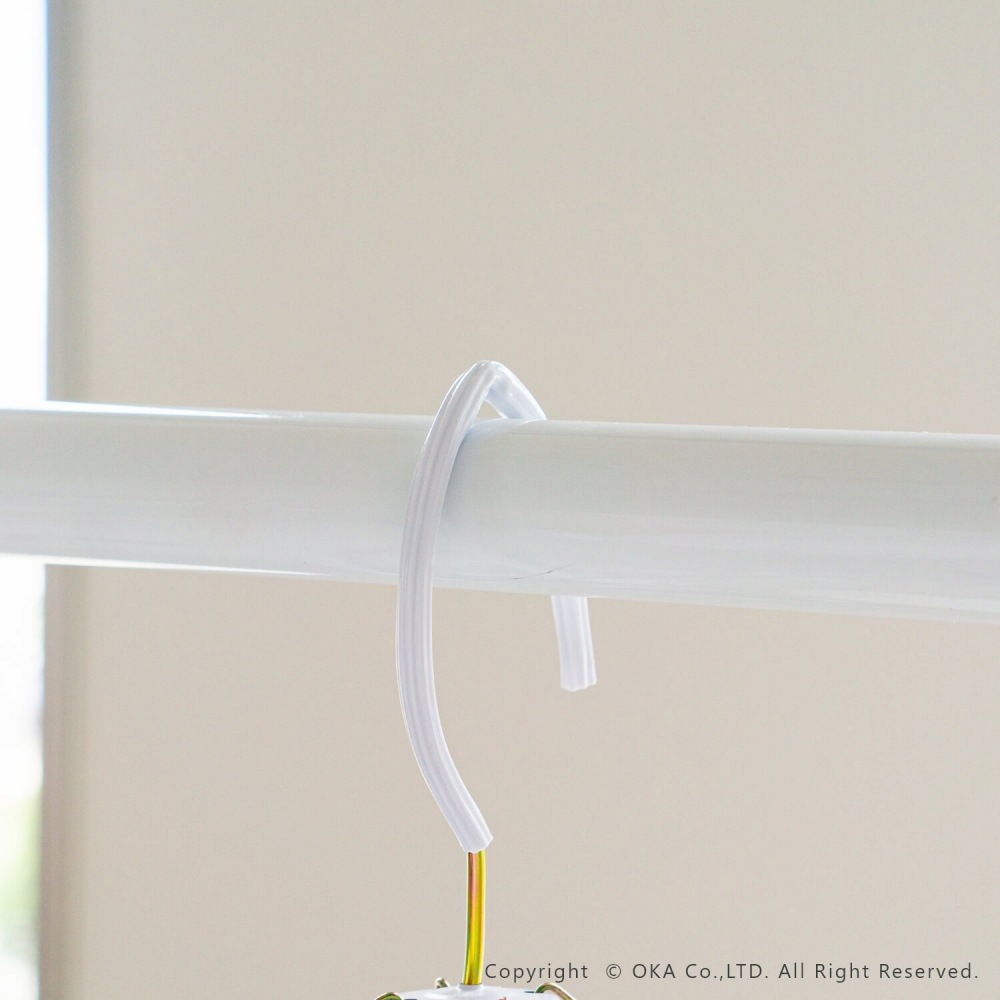 スチールだから丈夫で長持ち。急な雨でも便利は鴨居に掛けられる細くて丈夫なフックです。清潔感のある白色に爽やかな水玉模様が生活シーンをレトロに彩ります。