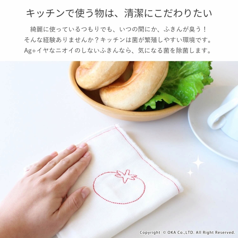 Ag+イヤなニオイのしない 除菌ふきん 刺繍入り 1枚入 ( トマト ラディッシュ 布巾 フキン 台拭き 食器拭き )