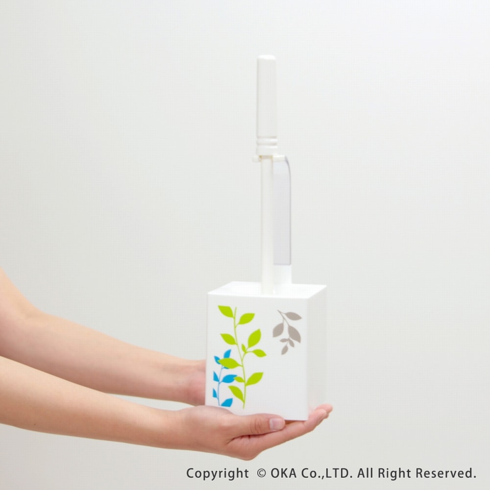 リーフ柄のシルエットをモダンにデザインしたケース付きトイレブラシ。