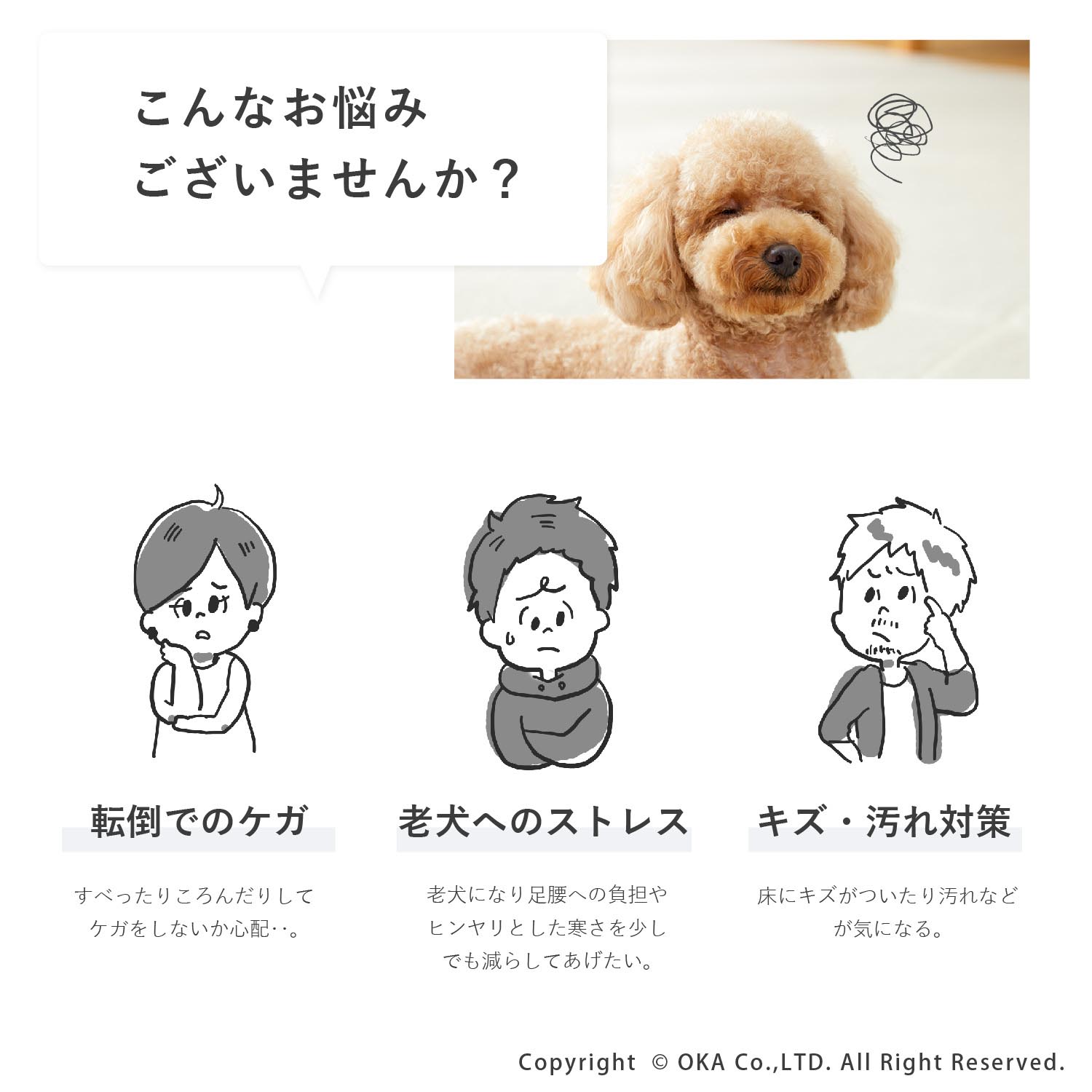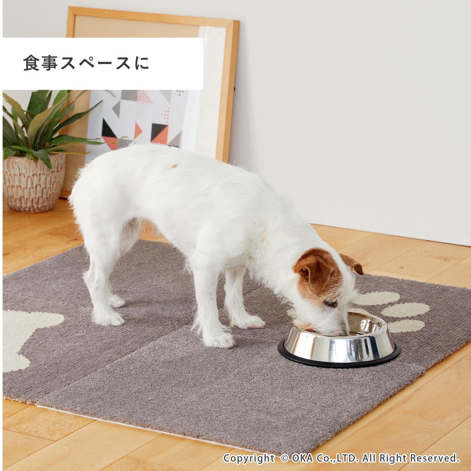 ツルッとすべって足腰に負担がかかってしまうフローリングを草原を思いっきり走り回っているようなふかふかラグへ変えてくれるペットラグ「ピタペトモ」6枚組。ペットと人が暮らす空間をもっと快適にしたいそんな想いから生まれたペットウェアです。ポイントは、裏面吸着で走ってもすべりにくい仕様。すべりやすいフローリングにピッタリのやさしいふかふかタッチ。汚れてしまった部分だけ洗えてお手入れが簡単。ゆったりと家族みんなが過ごせるラグ仕様。リビングだけではなく廊下やトイレやケージまわり、食事スペースにもピッタリ。カラーも暮らしの邪魔をしにくいベージュとブラウン、またアクセントに足跡やボーンのデザイン入りもございます。