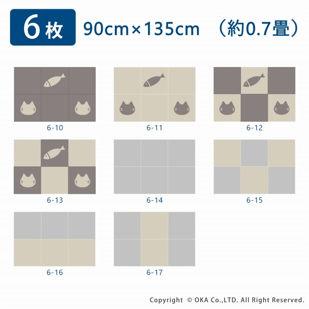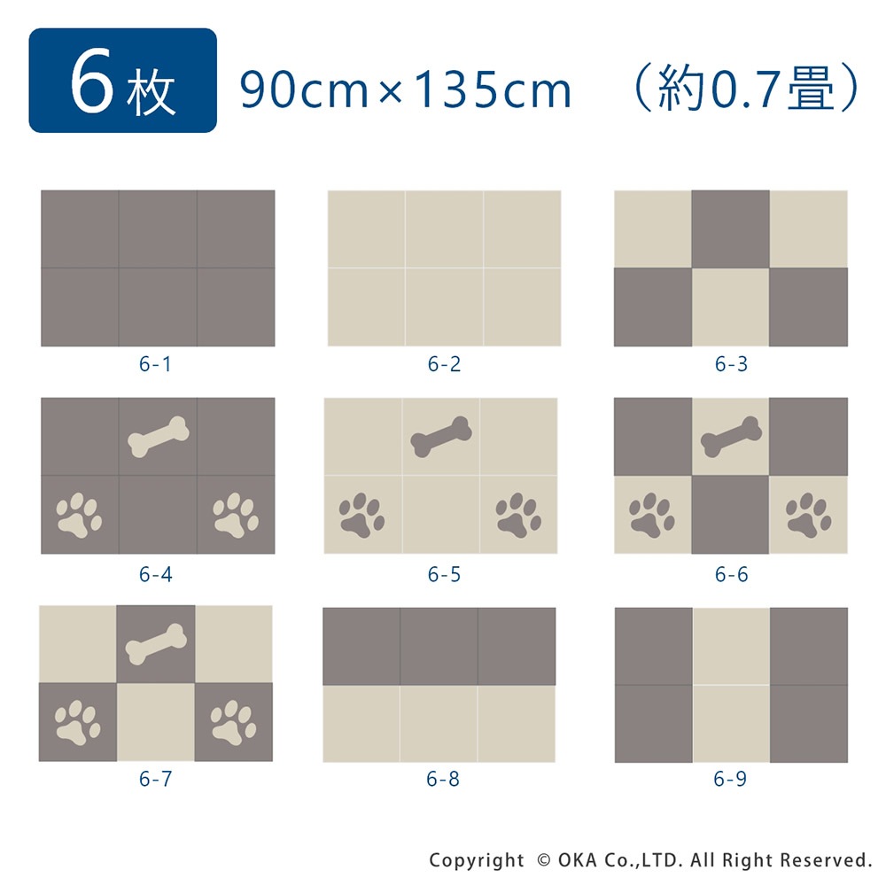 ピタペトモ 約45cm×45cm 6枚入 ( 約0.8畳分 タイルマット 洗える 吸着タイプ 床暖房対応 )