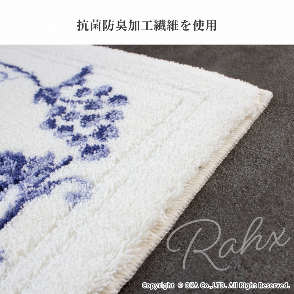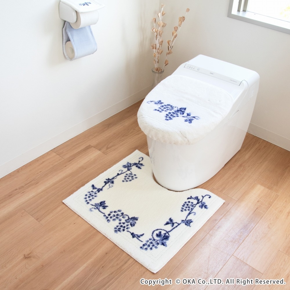 繊細な柄が表現できるウィルトン織りマットならではのエレガントな「乾度良好🄬ラクス トイレシリーズ」。毛立ちがいい、踏み心地がいい、日本製のこだわりの一枚です。お洗濯でき、抗菌防臭加工付きなのでいつでも清潔に保つことができます。トイレマットの裏面にはすべり止め加工が施されているのでズレにくい。糸の目をぎゅっと詰めて織り上げ、触り心地、重さなどに高級感があり、葡萄のデザインがトイレの空間をエレガントに彩ってくれます。